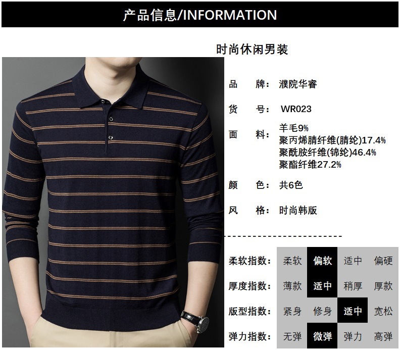 9% 울 소모사 봄, 가을 남성 긴팔 폴로 스웨터 국경 간 대외 무역 자카드 티셔츠 작업복 남성 통기성스토어 가기