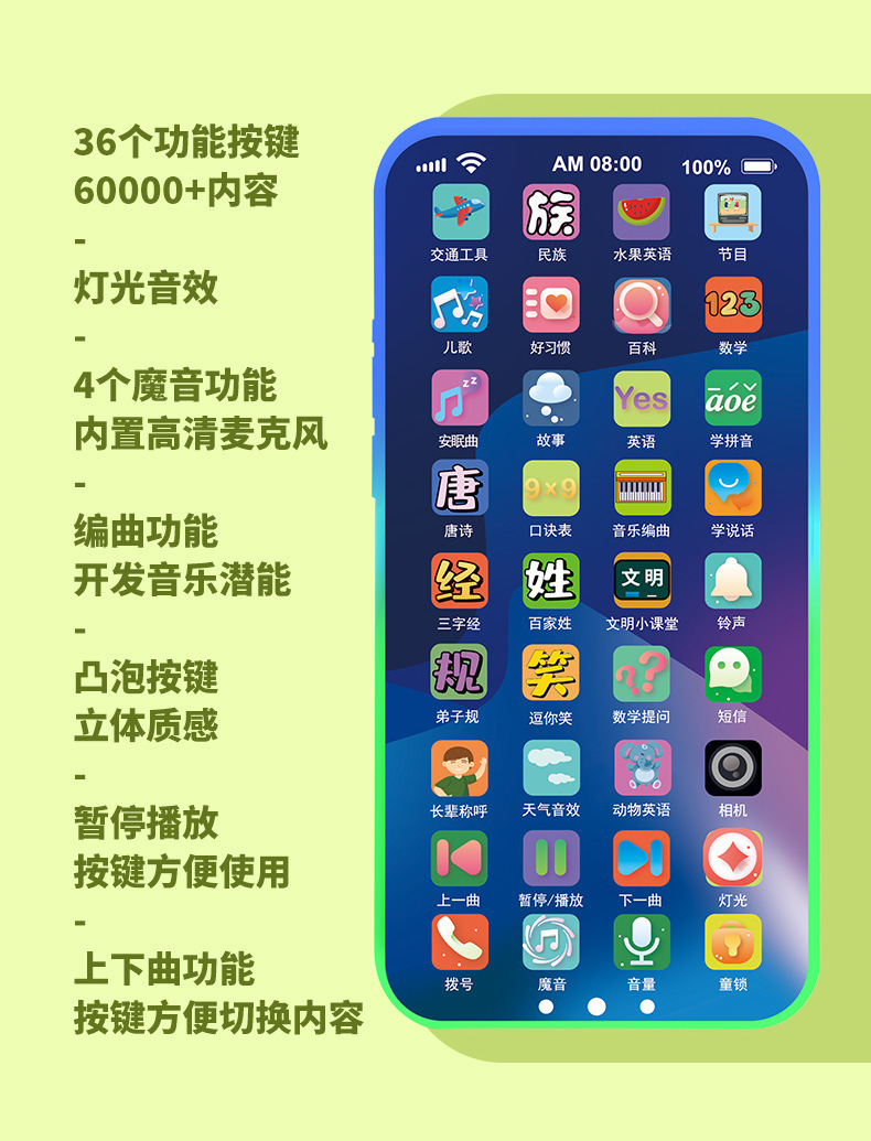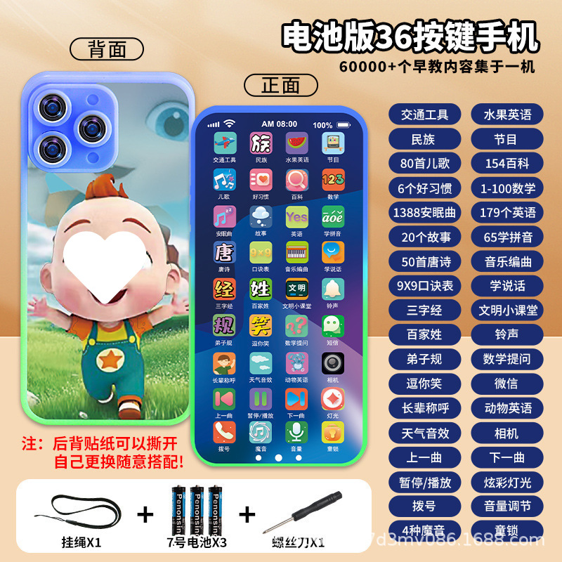 어린이 장난감 시뮬레이션 터치 스크린 휴대 전화 충전식 아기 소년 조기 교육 아기 음악 전화 학습 스마트스토어 가기