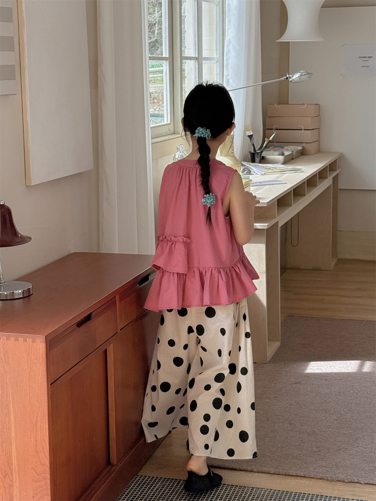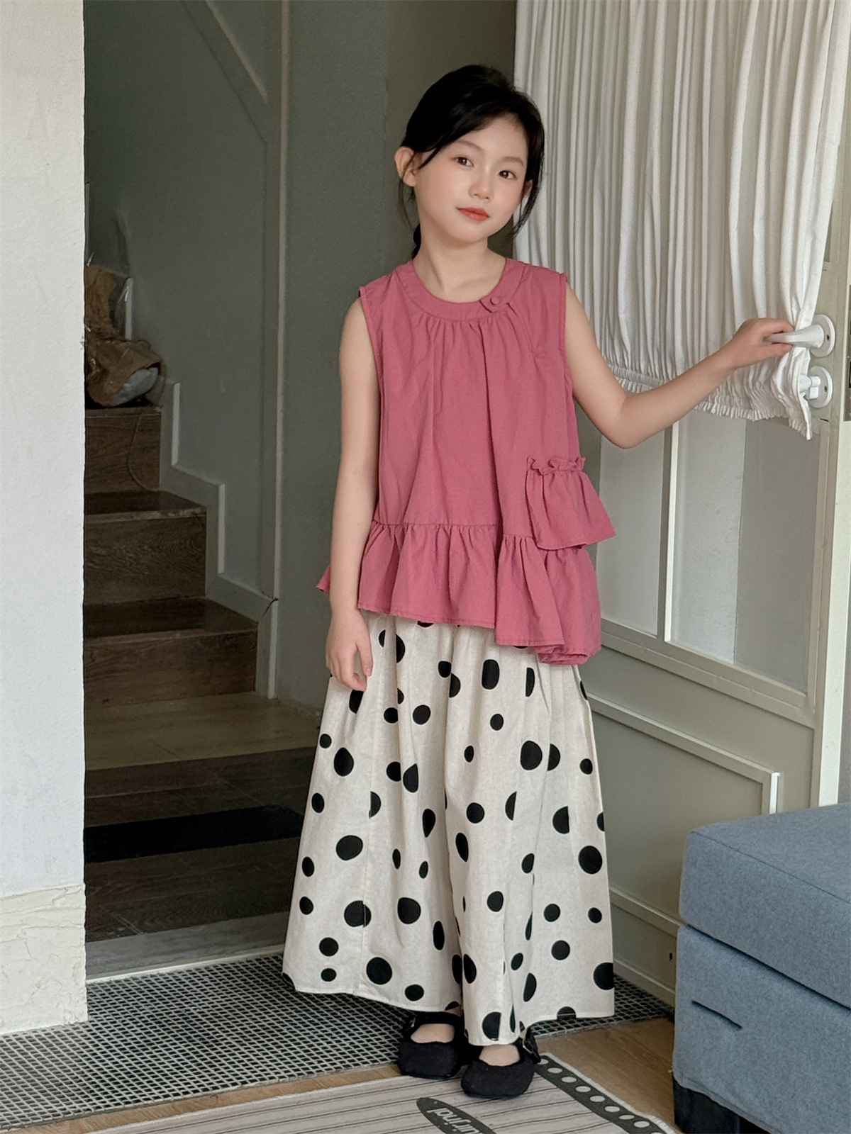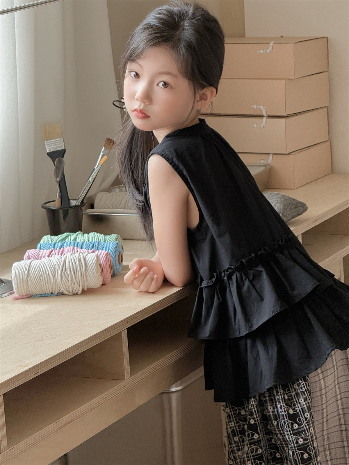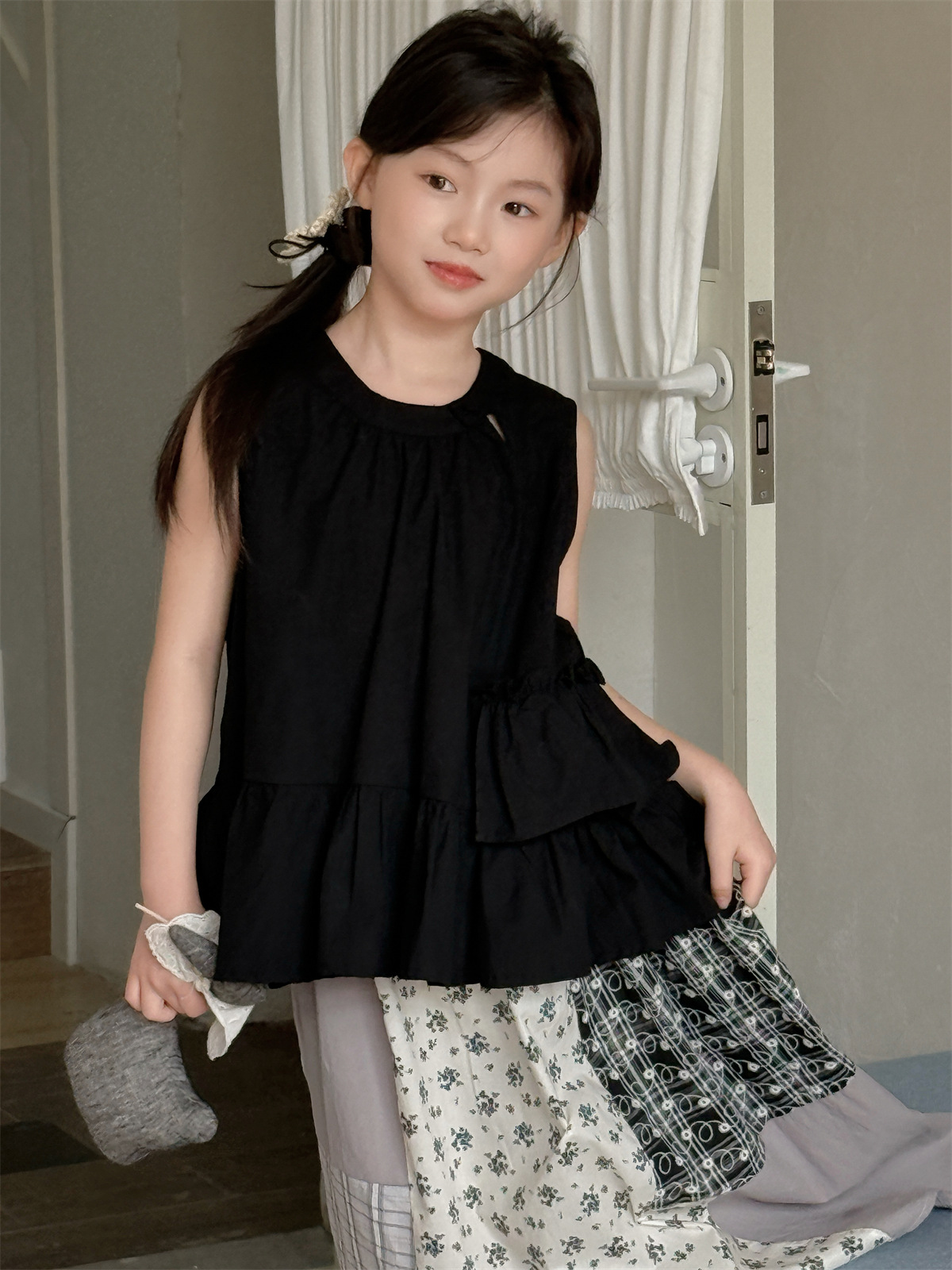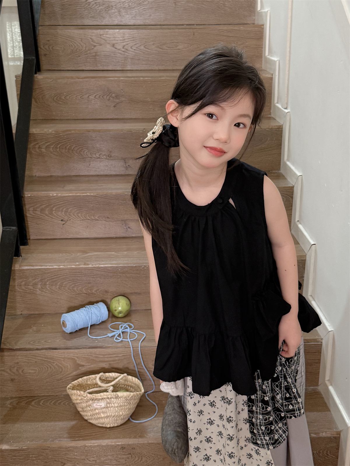 꽃과 세련 아동복 소녀상 2025 년 여름 새 한국식 어린이 올매치 레이스 셔츠 민소매 탑 트렌디스토어 가기