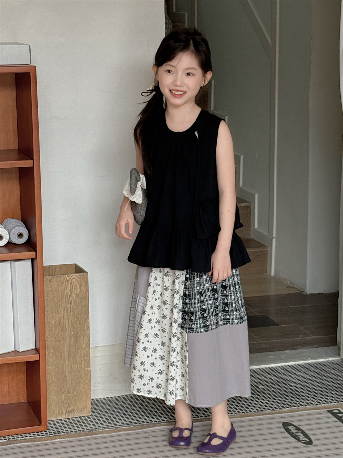 꽃과 세련 아동복 소녀상 2025 년 여름 새 한국식 어린이 올매치 레이스 셔츠 민소매 탑 트렌디