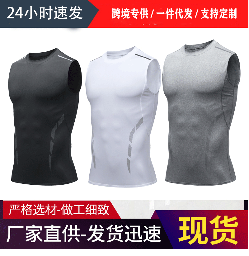 피트니스 타이트 조끼 남자 농구 티셔츠 아메리칸 스타일 트레이닝 트랙 및 필드베이스가 장착 된 빠른 건조 높은 탄성 웨이스트 코트