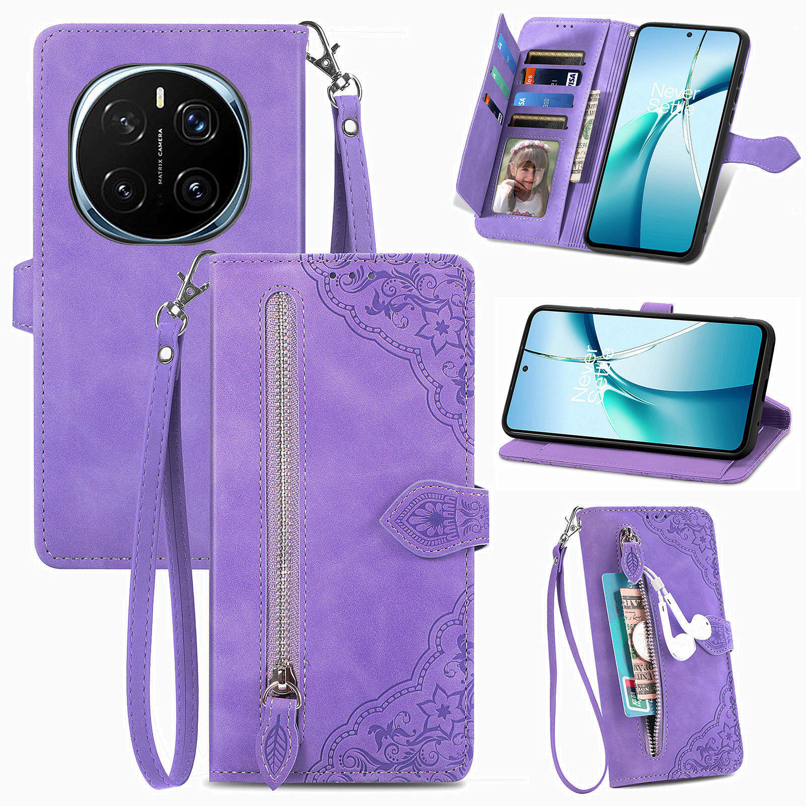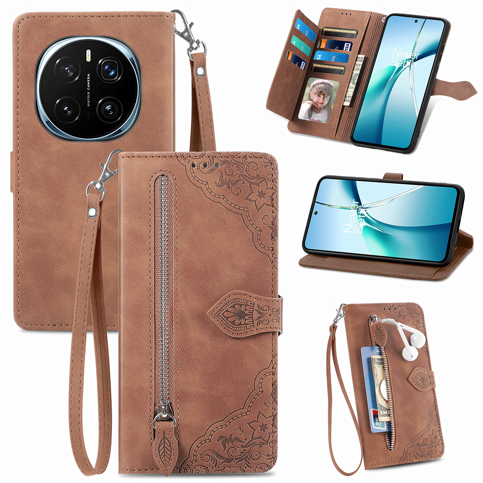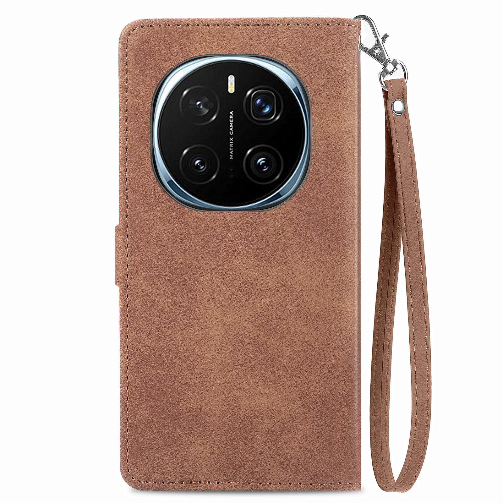 Honor Magic 7 Pro 지퍼 지갑 플립 폰 카드 끈 가죽 케이스 Honor 200에 적합
