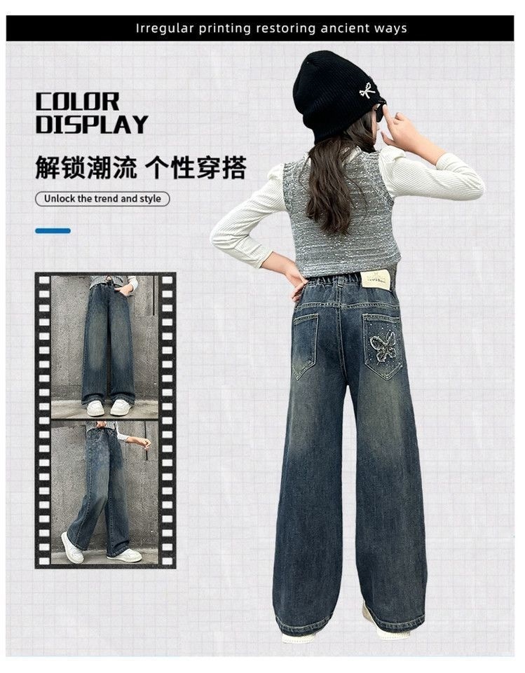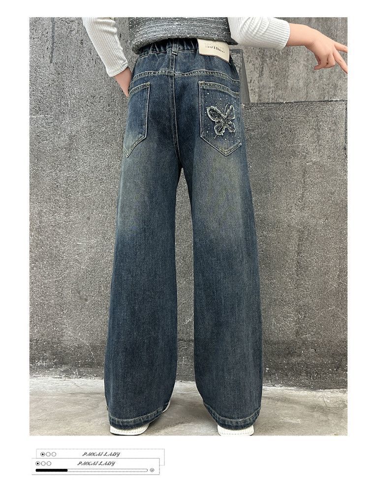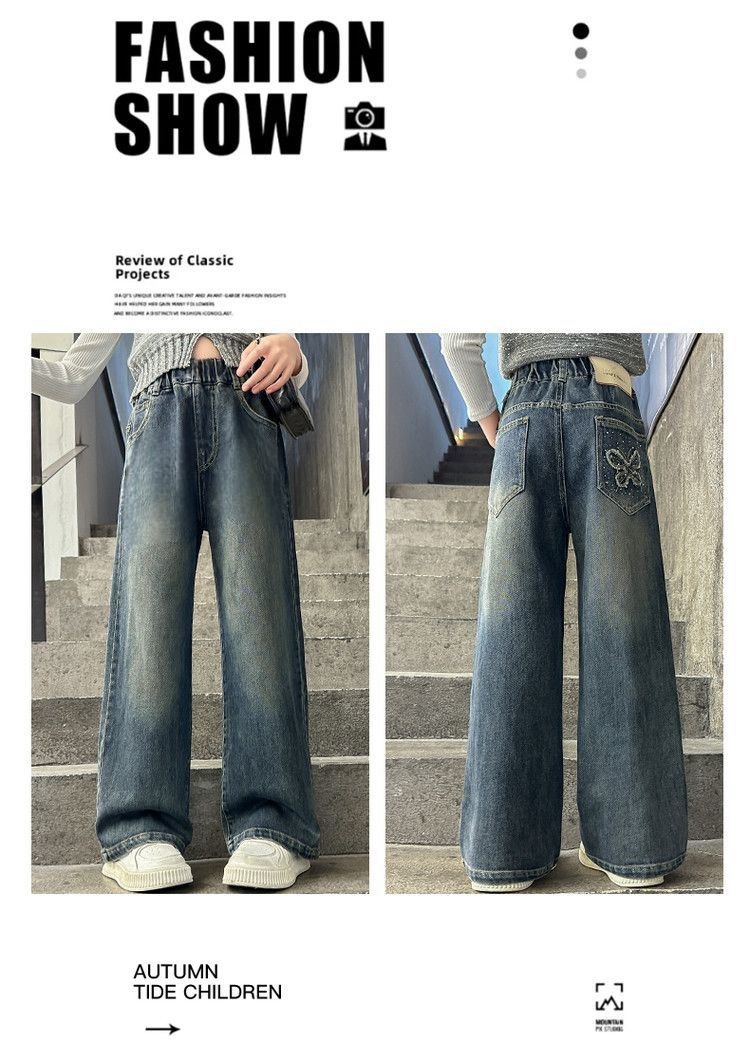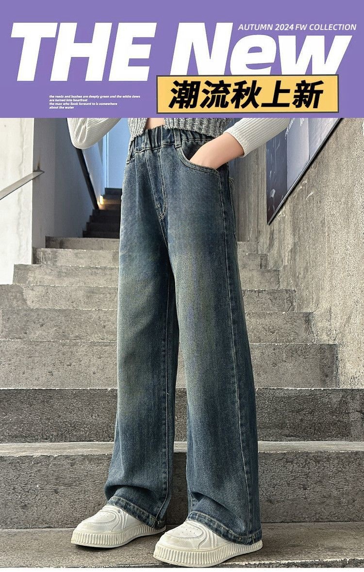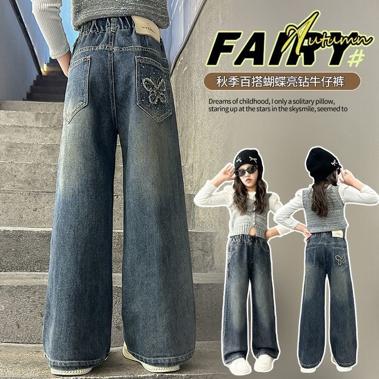 소녀 청바지 봄과 가을 2025 새로운 한국 스타일 서양식 어린이 바지 여성 빅 어린이 봄 스트레이트-다리 와이드-다리 바지스토어 가기