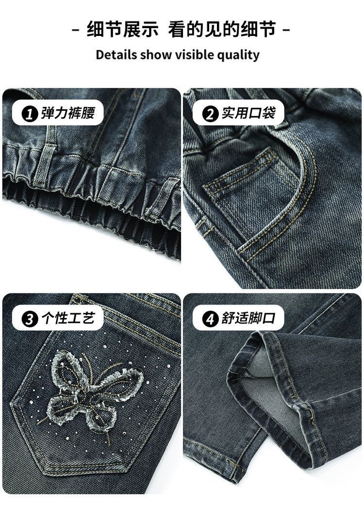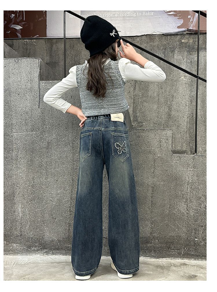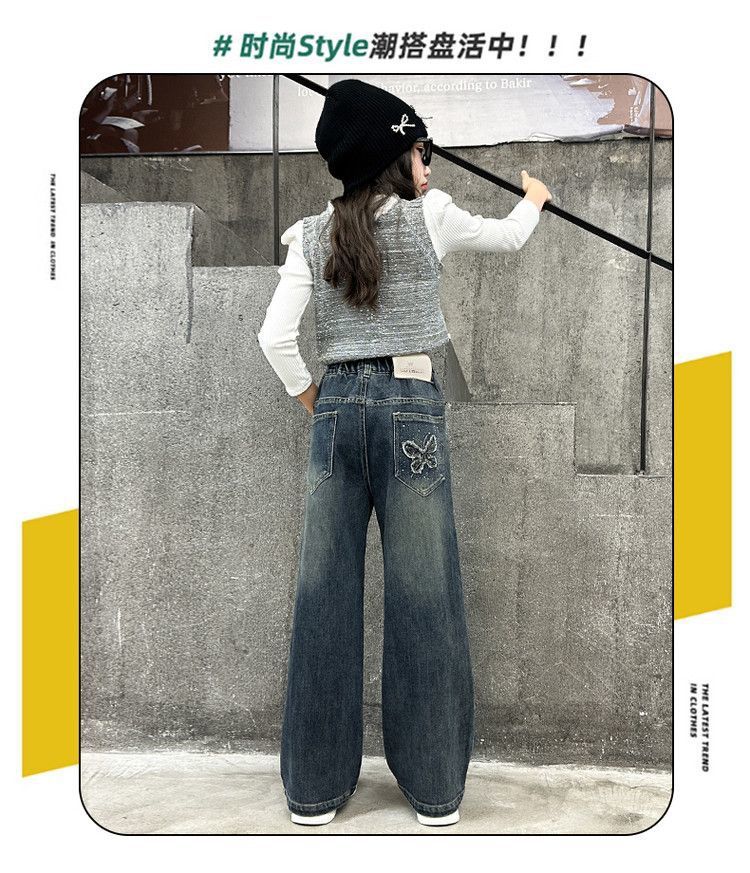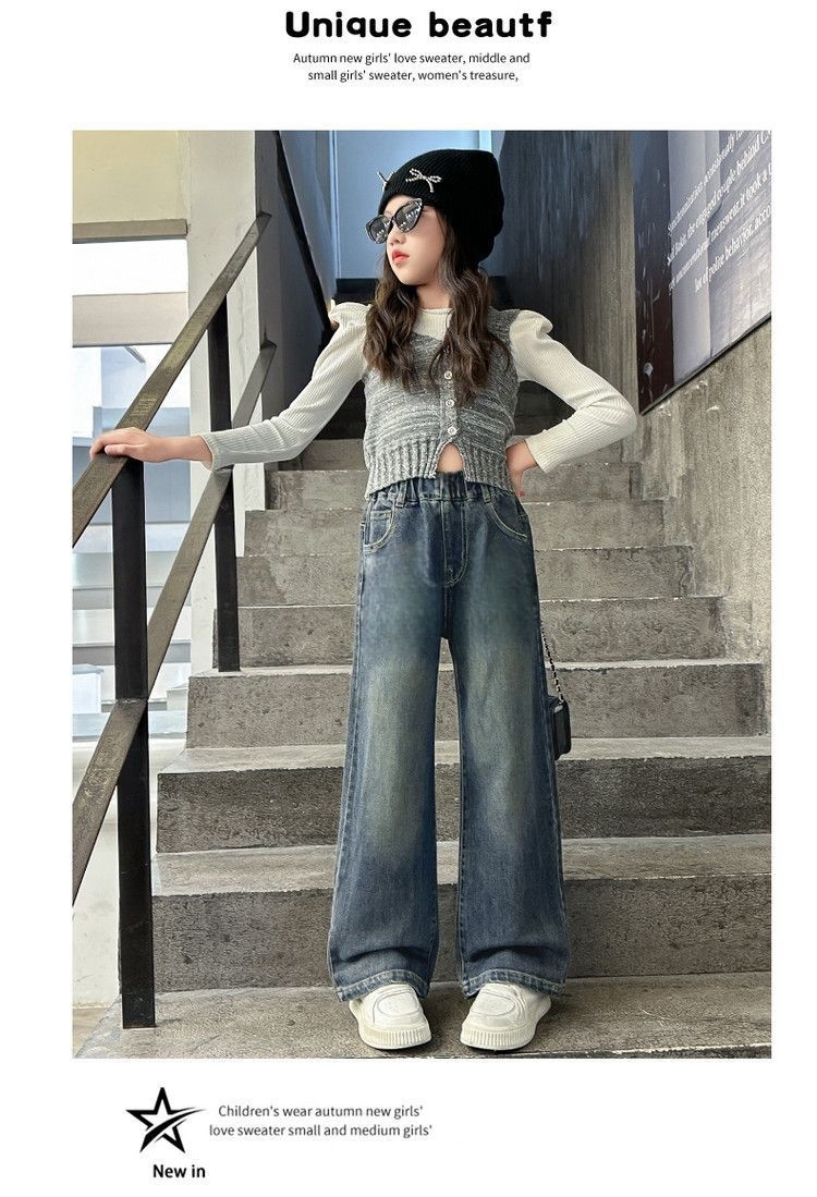 소녀 청바지 봄과 가을 2025 새로운 한국 스타일 서양식 어린이 바지 여성 빅 어린이 봄 스트레이트-다리 와이드-다리 바지스토어 가기