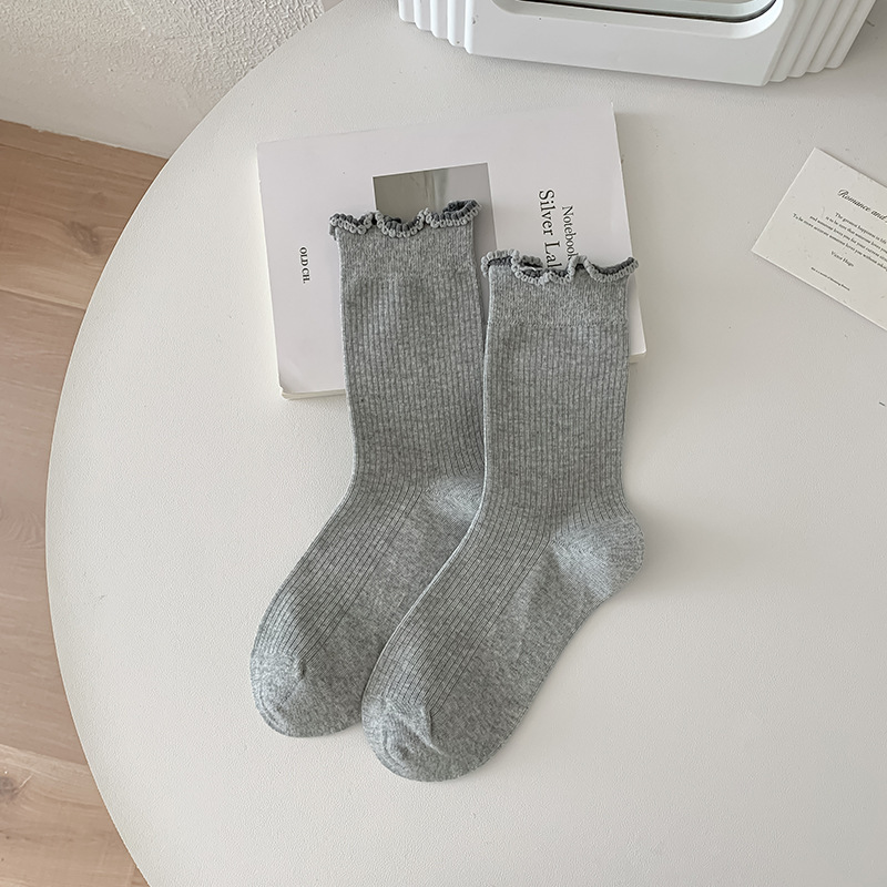 가을 겨울 여성용 양말 새로운 스타일 중간 길이 면 양말 컬러 블록 레이스 일본식 ins 소녀 양말 도매스토어 가기