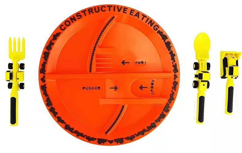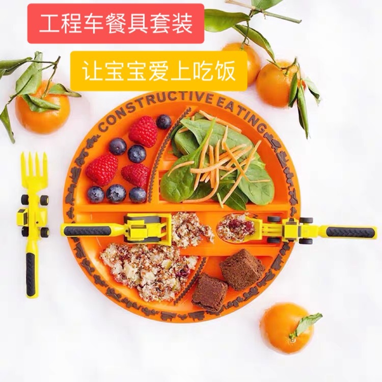 창의적인 엔지니어링 차량 어린이 식기 세트 아기가 독립적으로 먹는 것을 좋아하게 만드는 나이프와 포크 조합 3피스 수납함스토어 가기