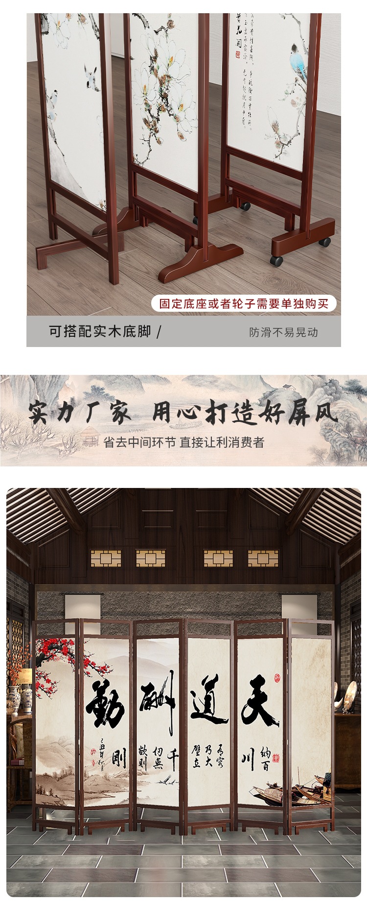 중국 스타일 솔리드 우드 스크린 파티션 벽 사무실 접히는 모바일 호텔 홈 거실 음영 입구 문 소프트스토어 가기