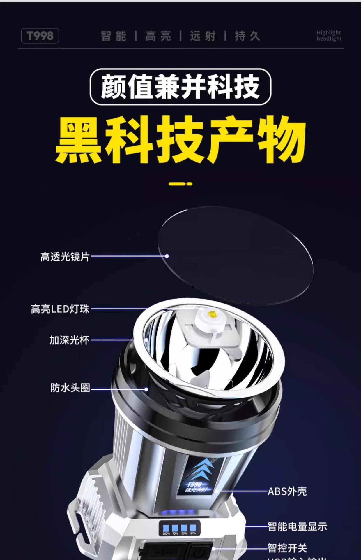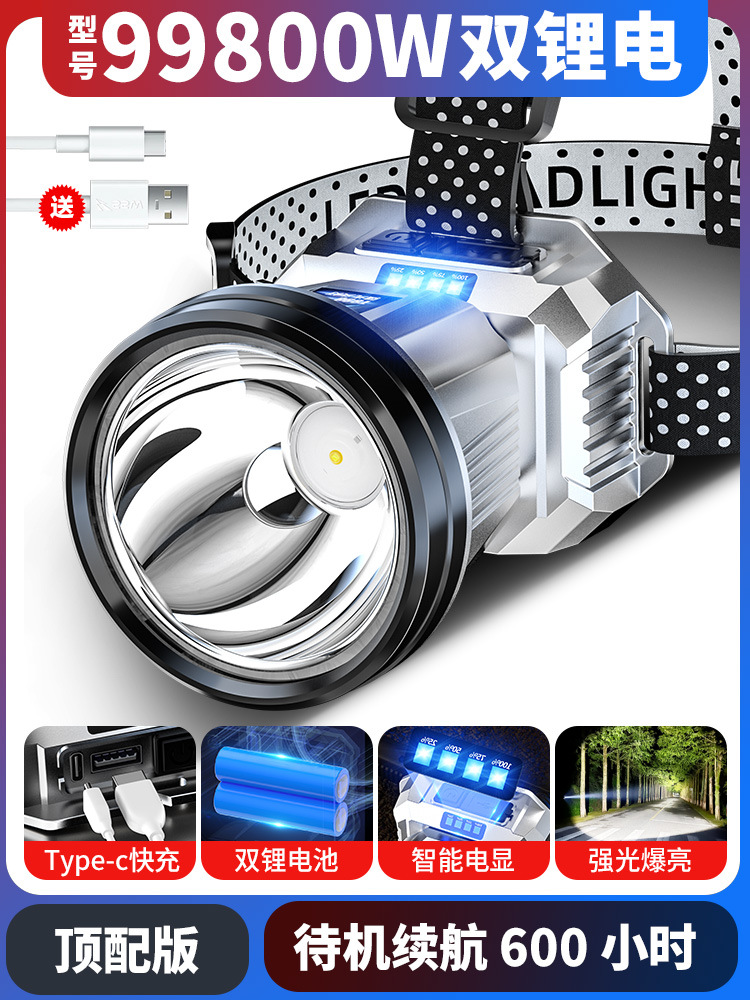 헤드 램프 헤드 장착 강한 빛 충전 슈퍼 밝은 낚시 슈퍼 긴 내구성 리튬 손전등 광부의 램프 유도 야간 낚시 배터리스토어 가기