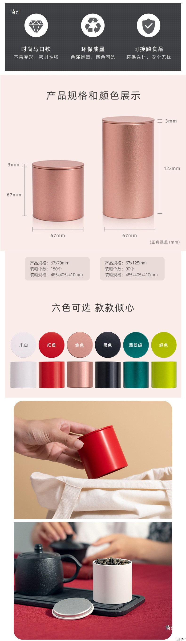 Tianhui 차 캔 차 포장 라운드 캔 벌크 차 캔 밀봉 캔 포장 상자 유니버설 틴플레이트 빈 캔