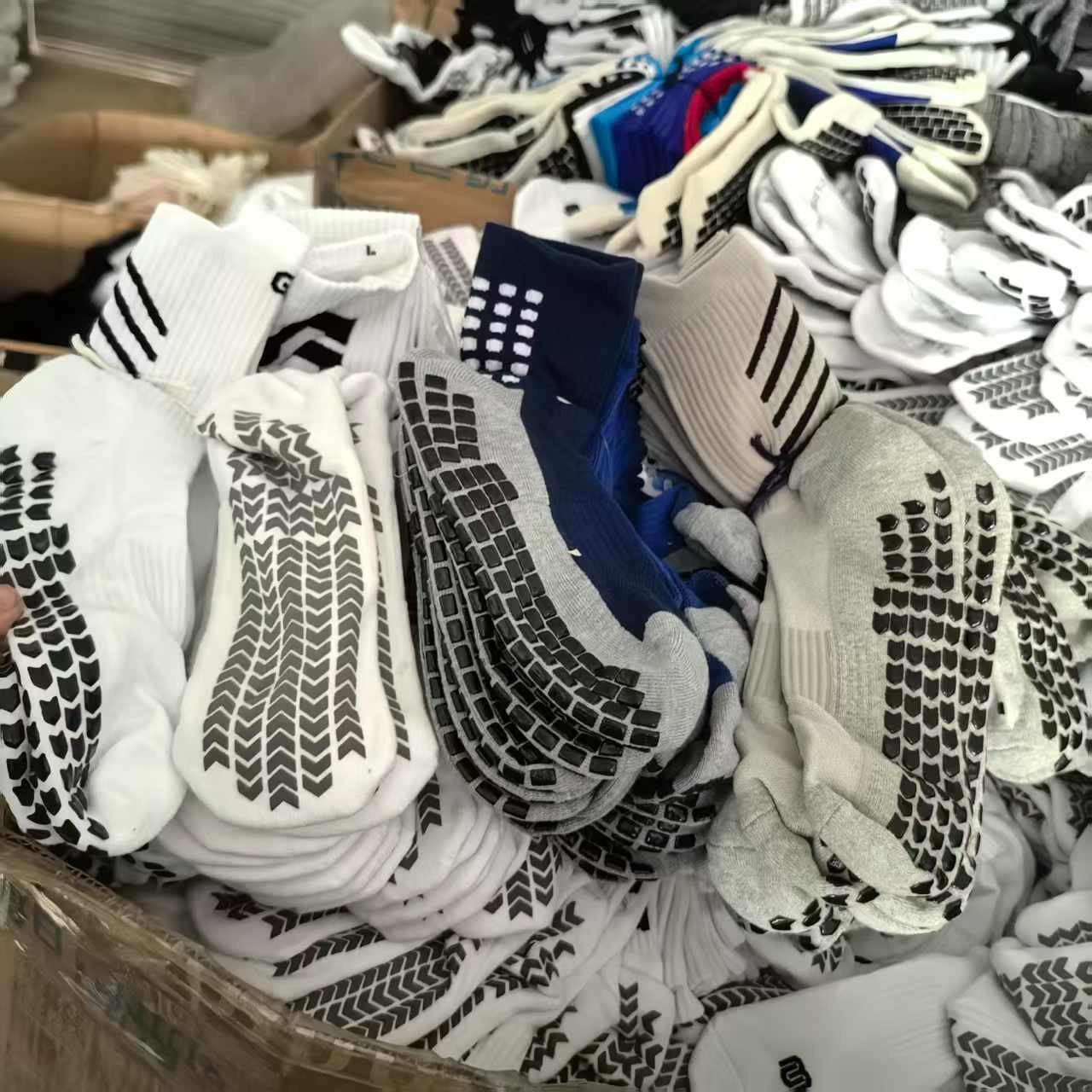 국경 간 인기 판매 전문 두꺼운 수건 바닥 땀 흡수 및 탈취제 점착제 미끄럼 방지 축구 스포츠 축구 양말 요가 양말스토어 가기
