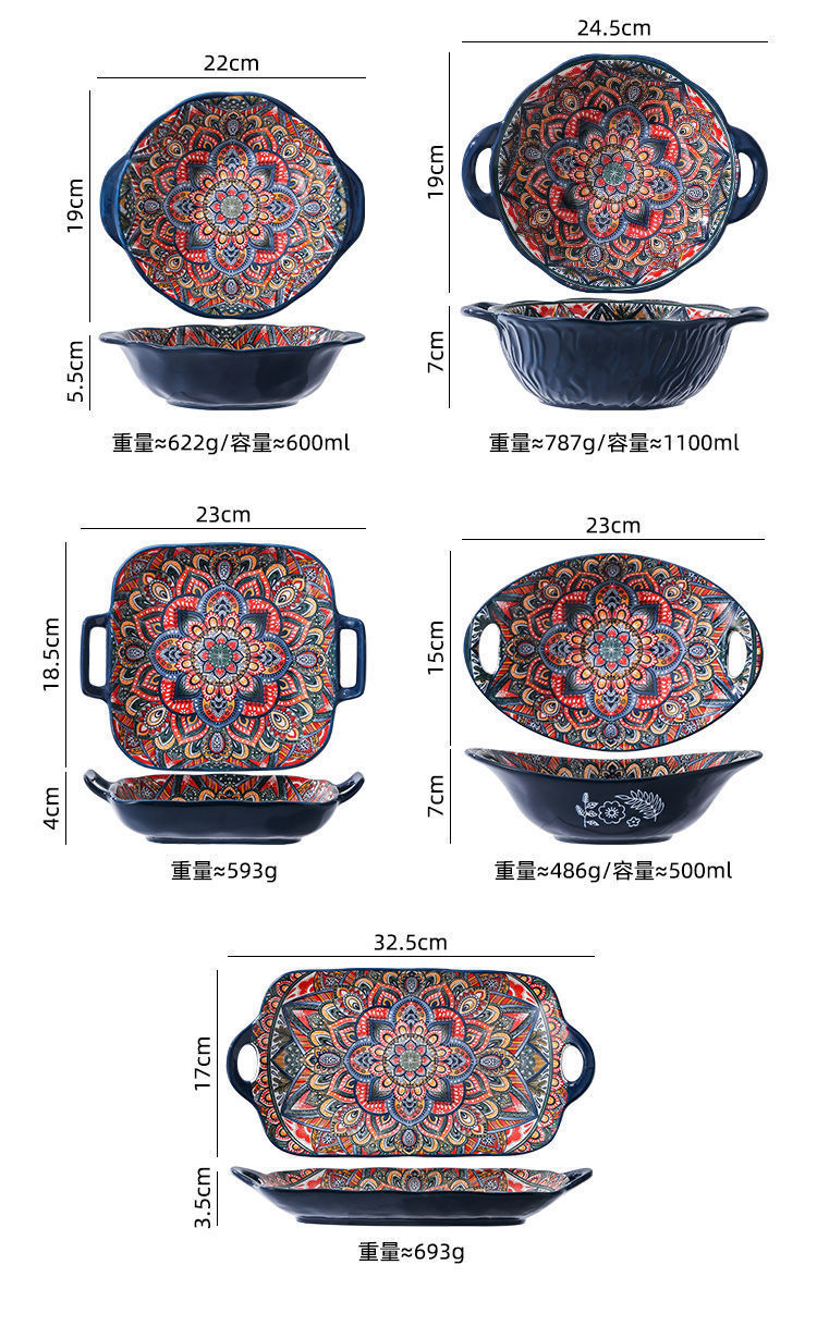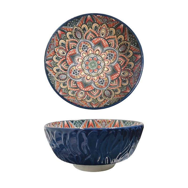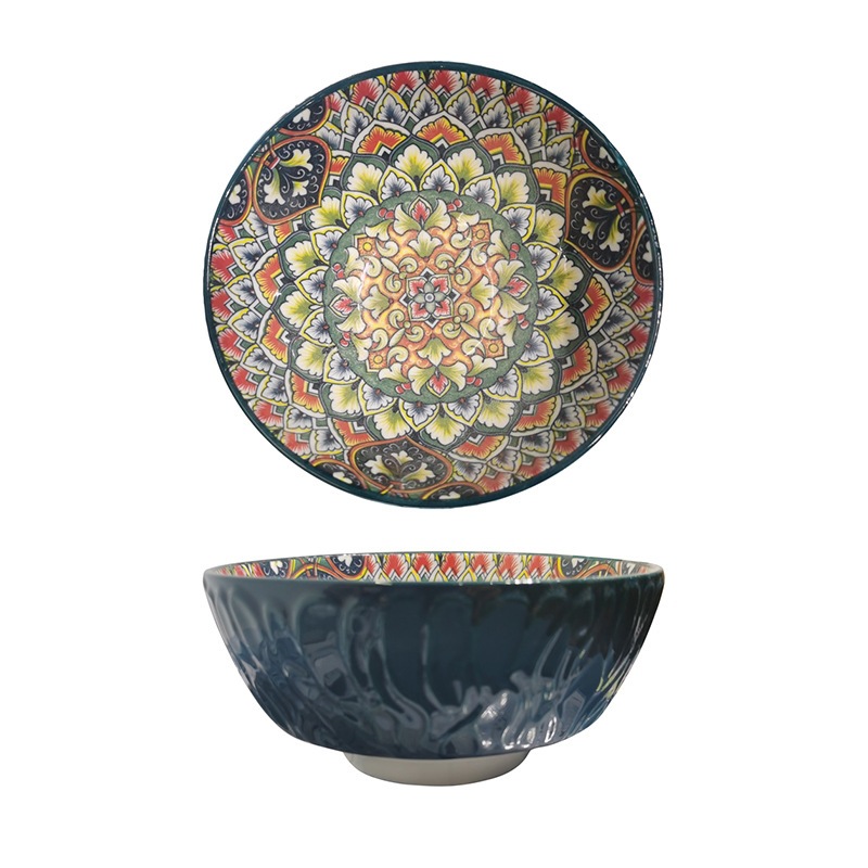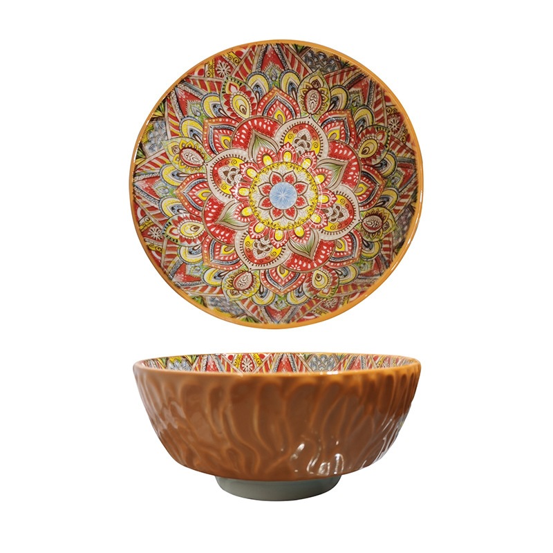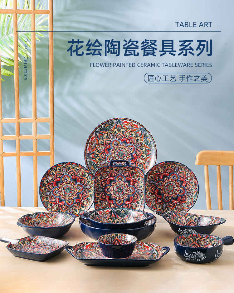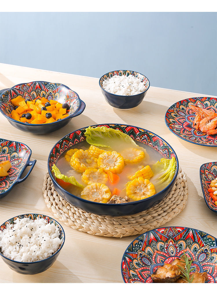 빈티지 가정용 도매 세라믹 식기 쌀 그릇 보헤미안 쌀 그릇 수프 플레이트 딥 플레이트 스톤 패턴 무거운 산업 식기 없음스토어 가기