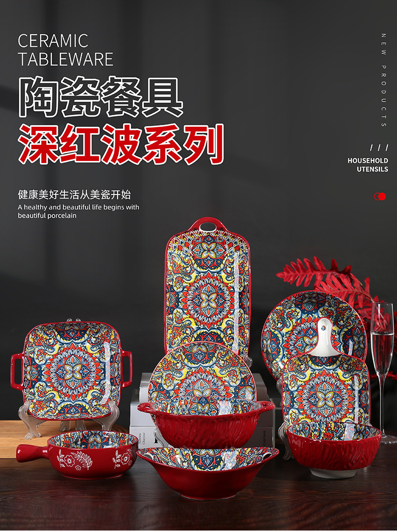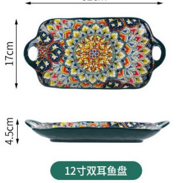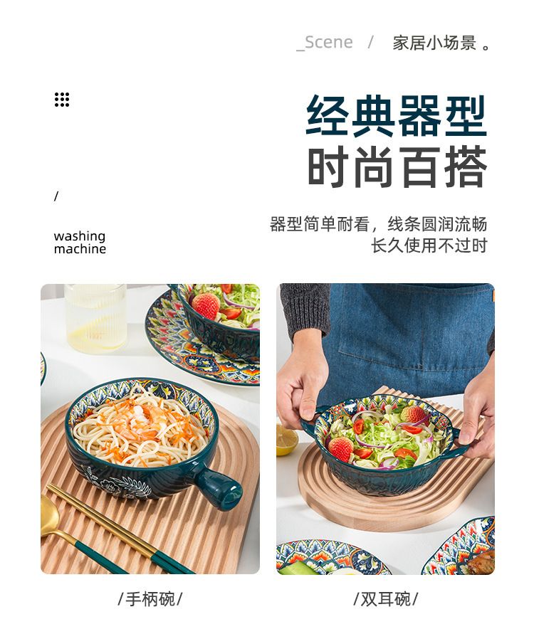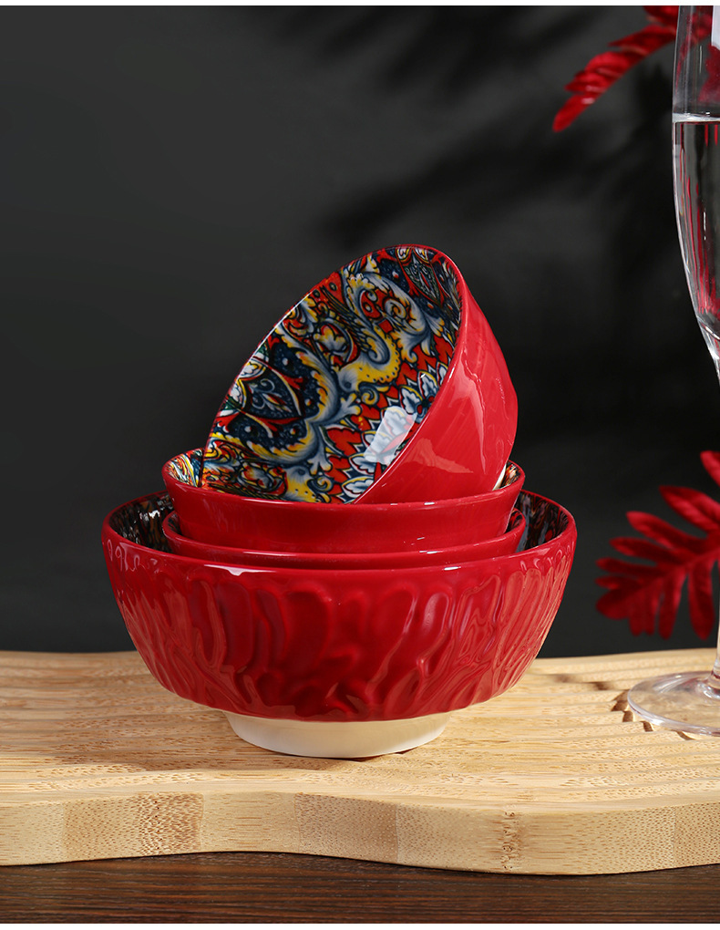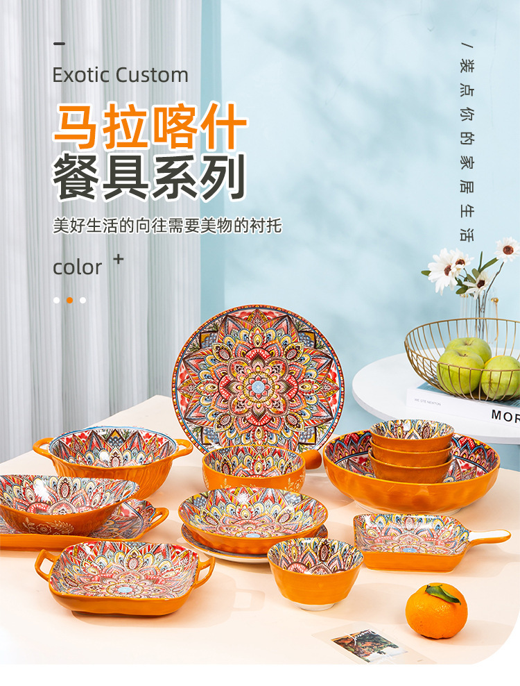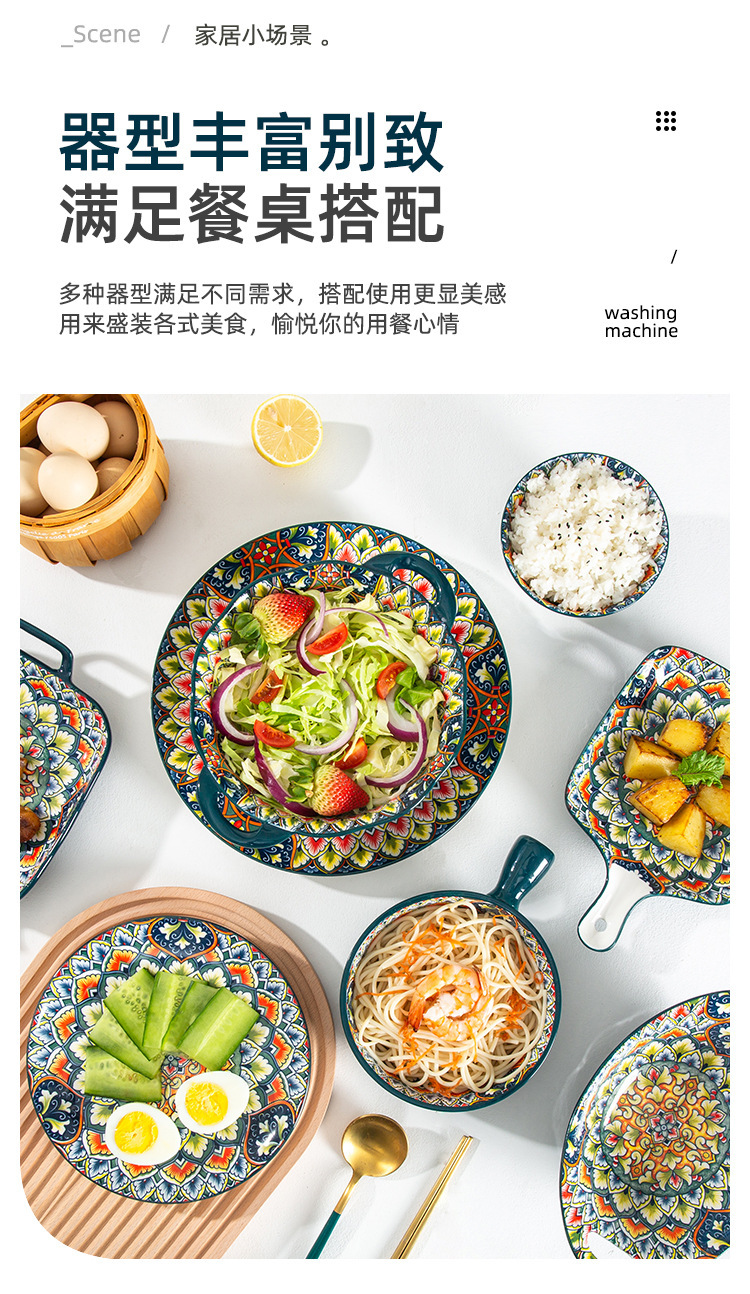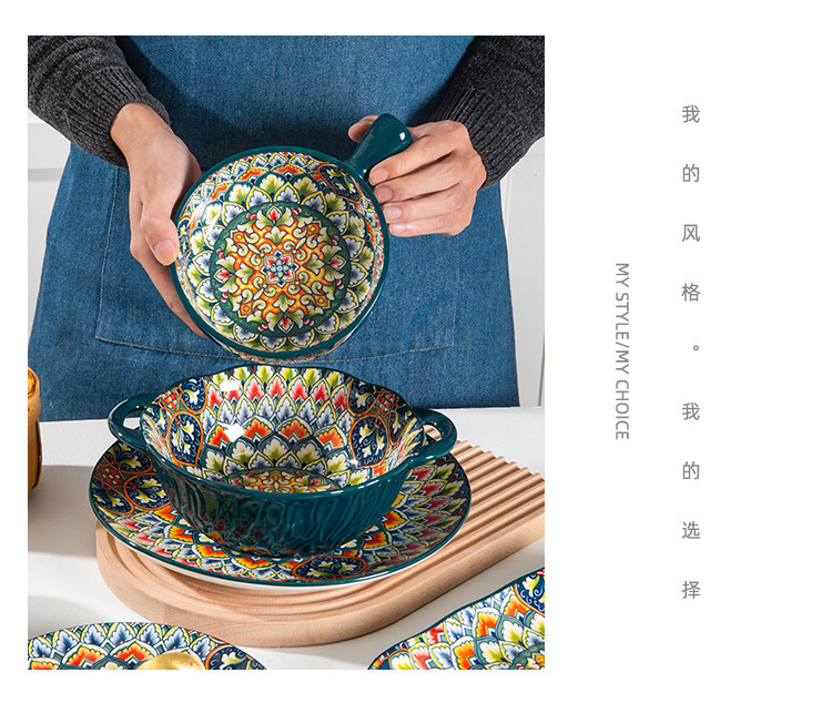 빈티지 가정용 도매 세라믹 식기 쌀 그릇 보헤미안 쌀 그릇 수프 플레이트 딥 플레이트 스톤 패턴 무거운 산업 식기 없음스토어 가기