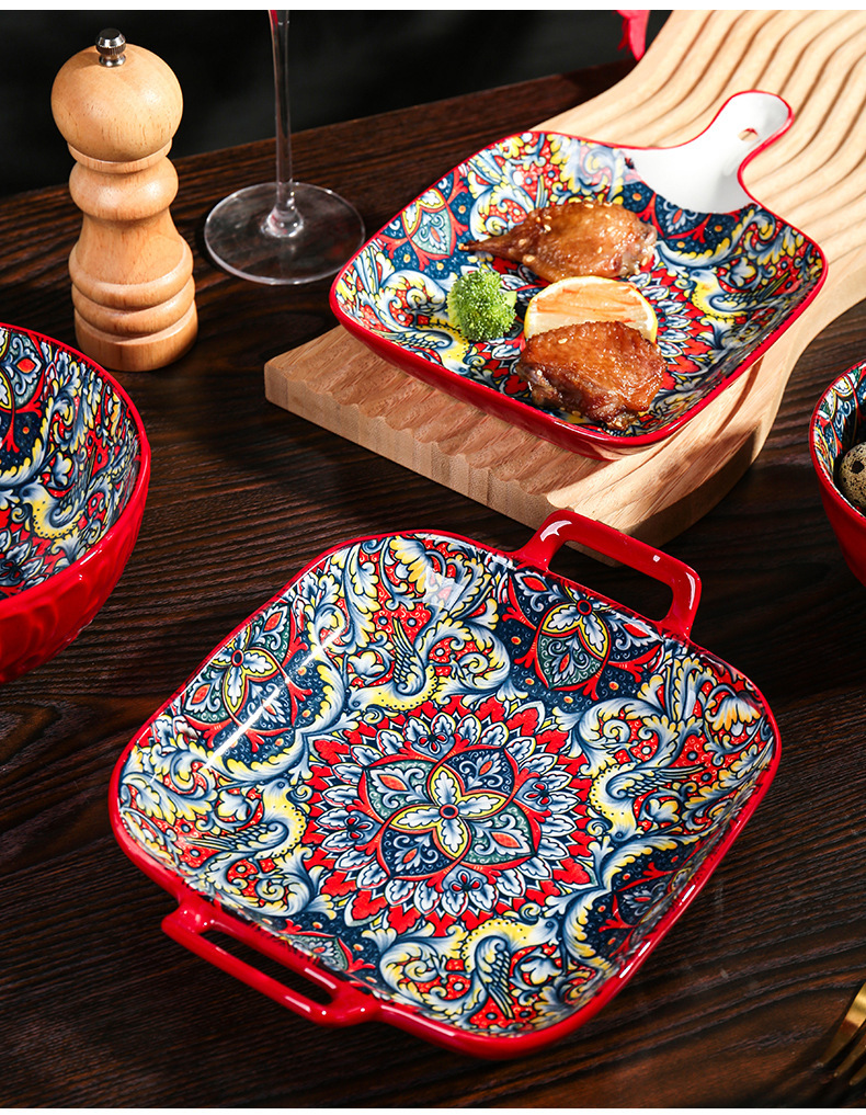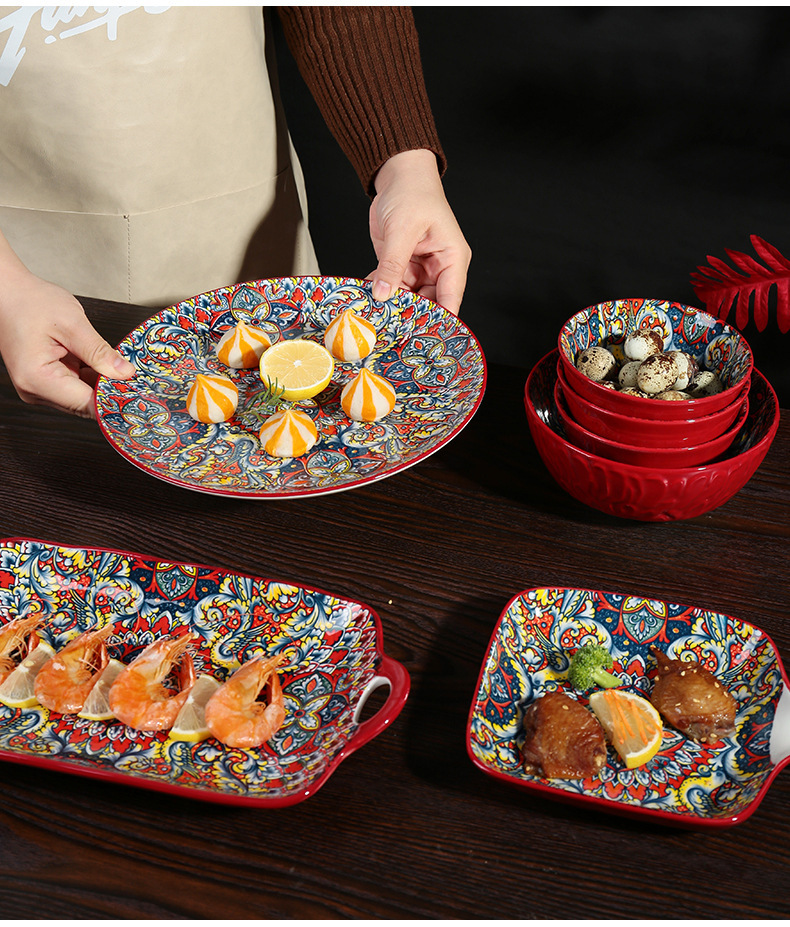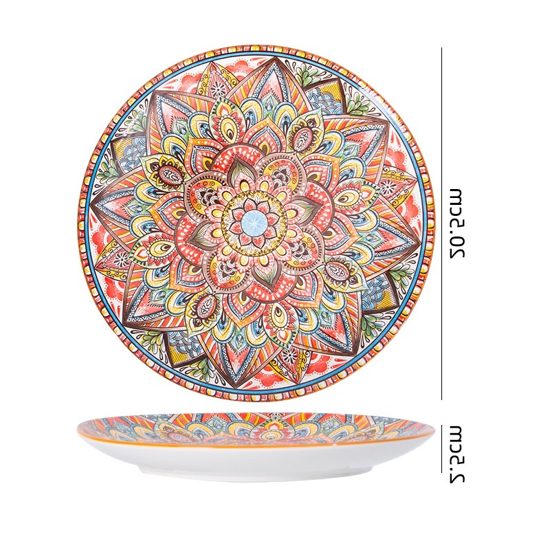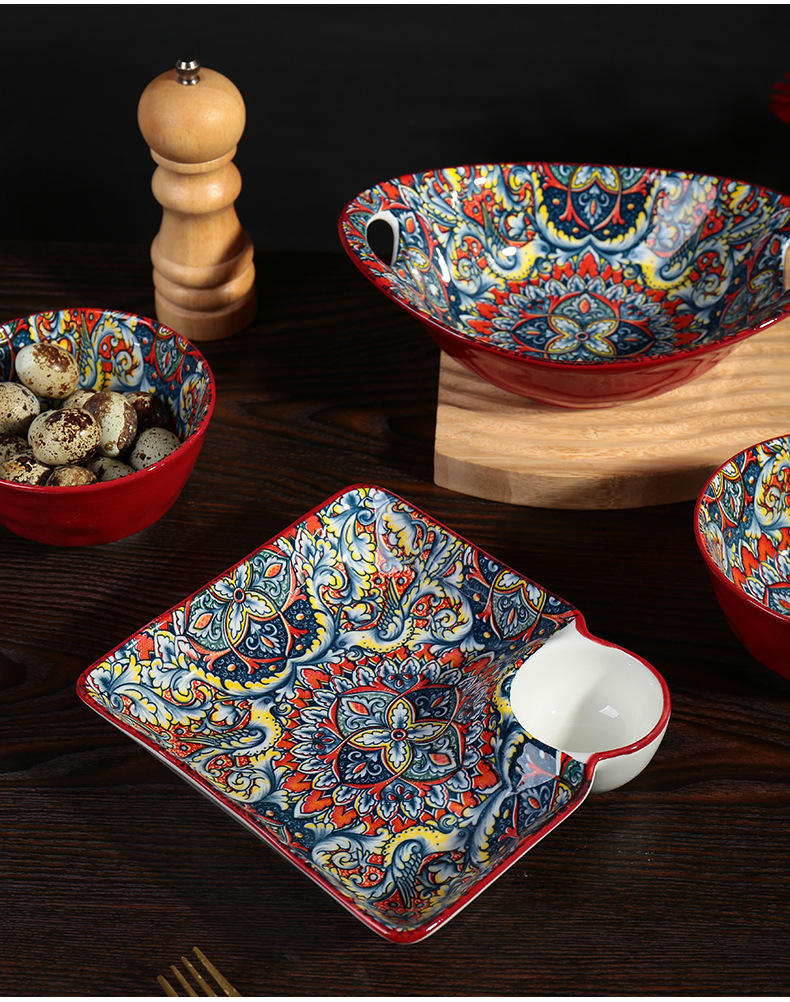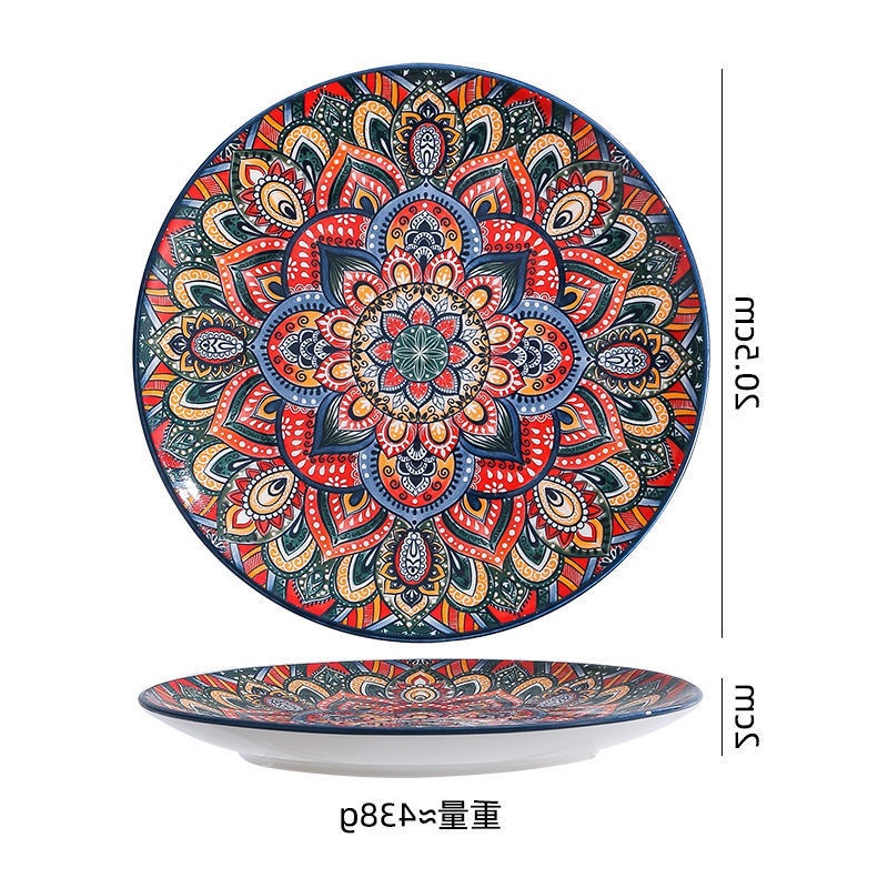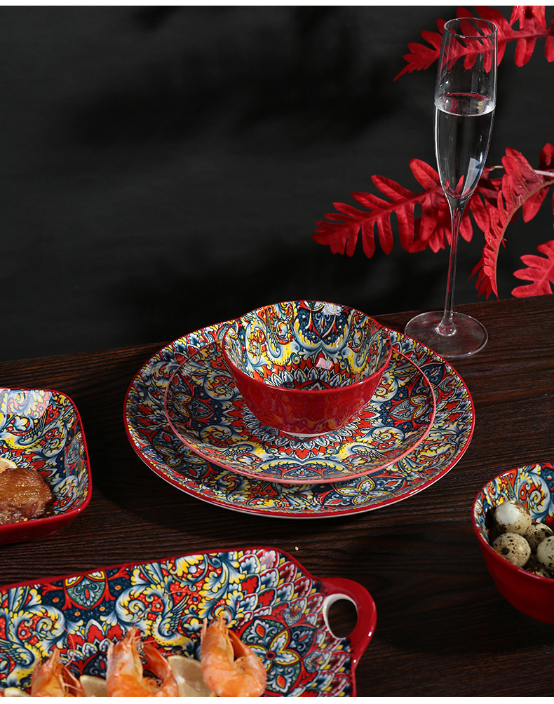 • 보헤미안 8inch 스톤 패턴 딥 플레이트 - 다크 레드