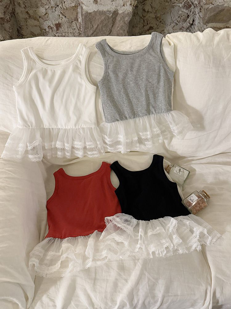 어린이 의류 도매 소녀 조끼 여름 25 새로운 어린이 빛 여성 아기 바늘 심장 작은 콘돌 거즈 작은 조끼스토어 가기