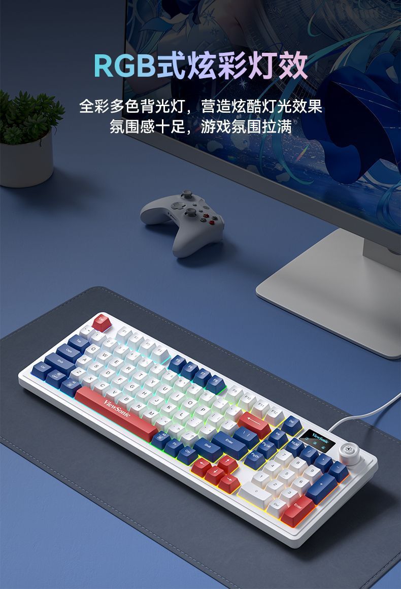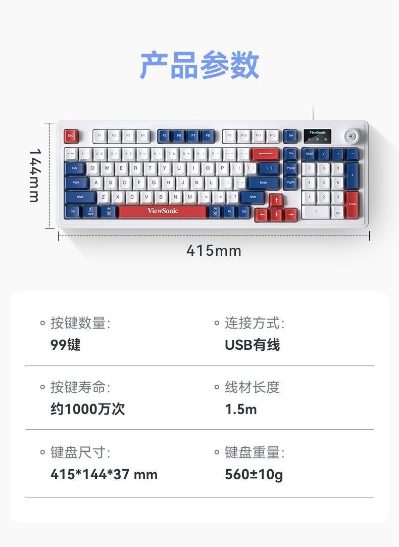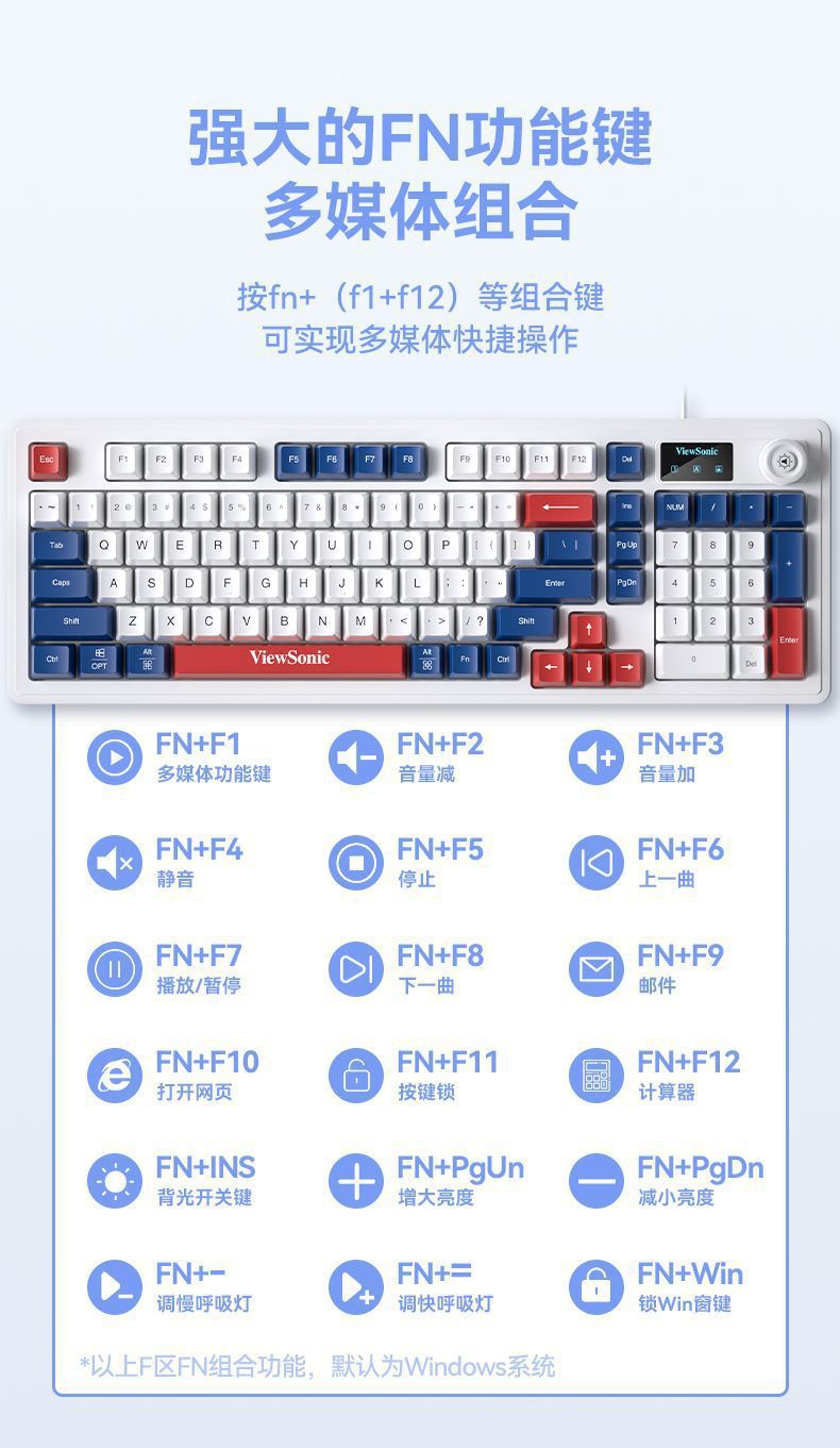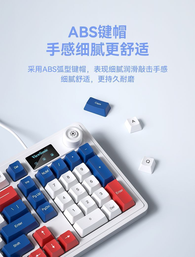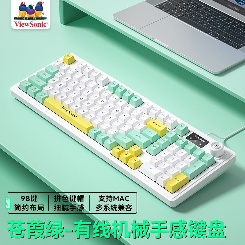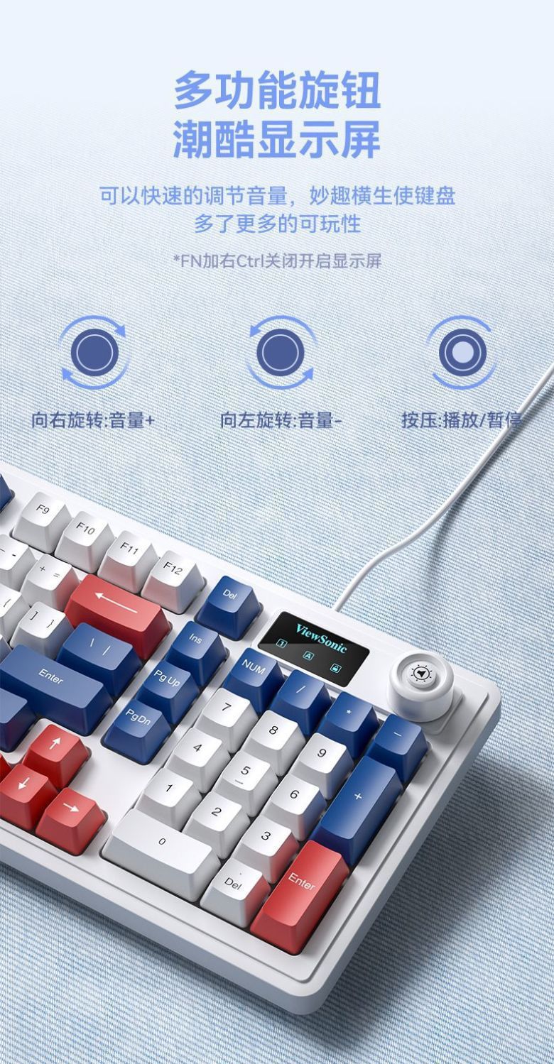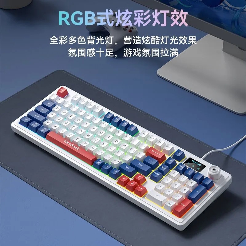 ViewSonic KU127 기계적 느낌, 스크린 디스플레이 및 손잡이 포함 유선 노트북 e-스포츠 게임용 사무실 키보드