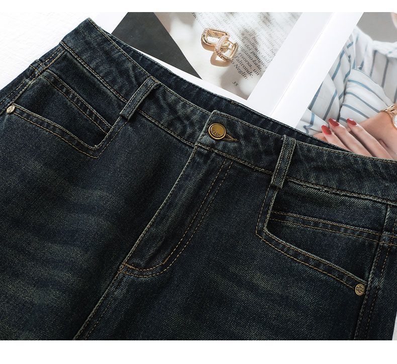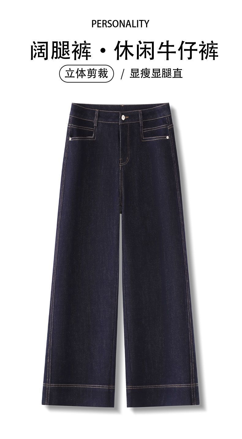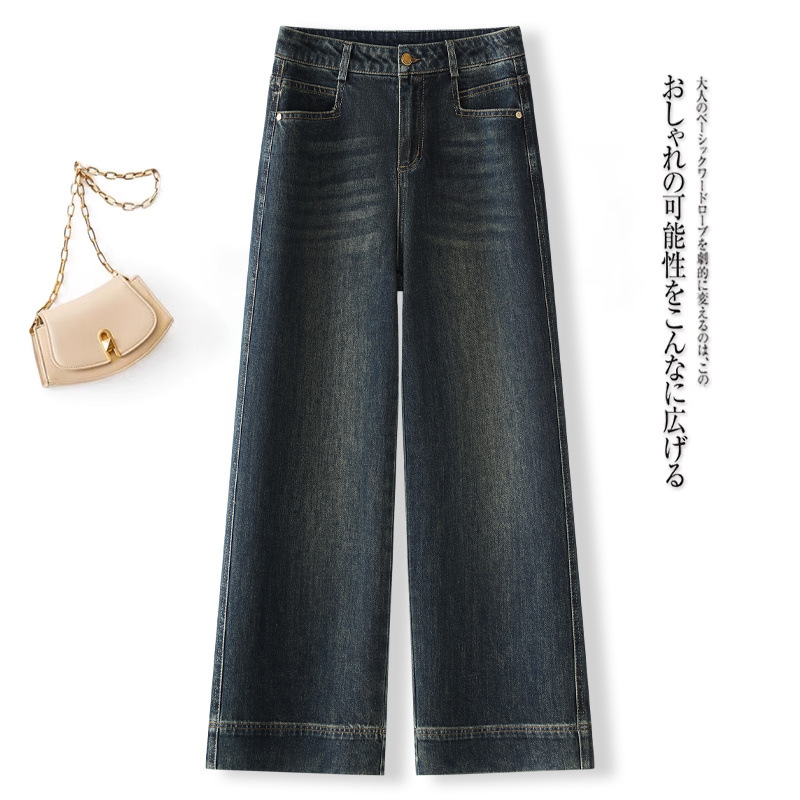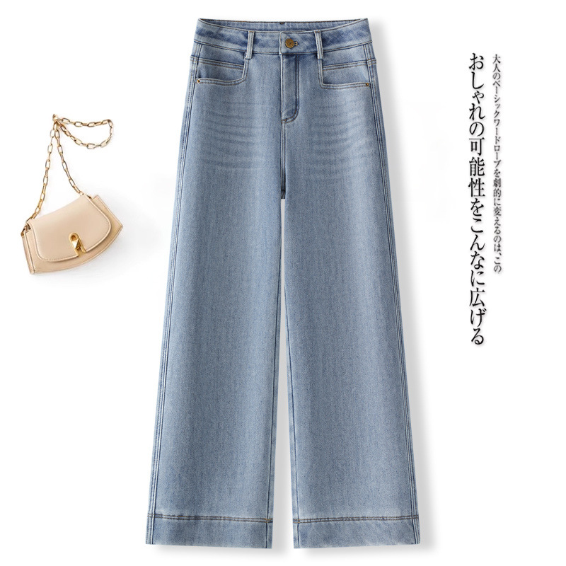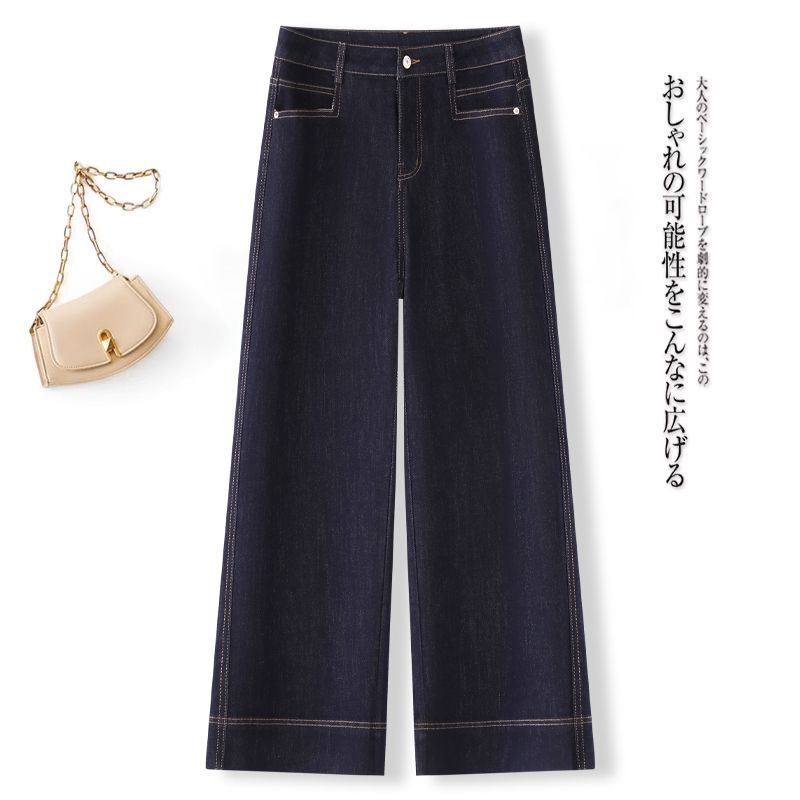 타닌 블루 좁은 와이드 레그 청바지 여자 봄과 가을 2025 새로운 도착 바지 올매치 스트레이트 바지스토어 가기