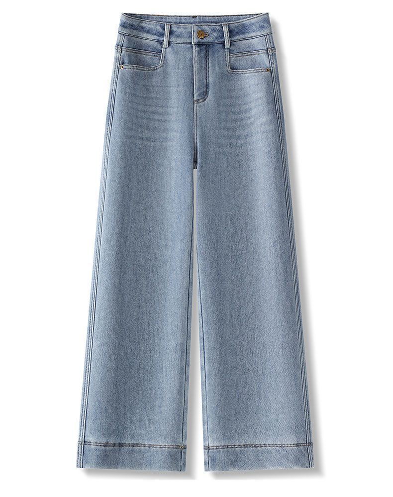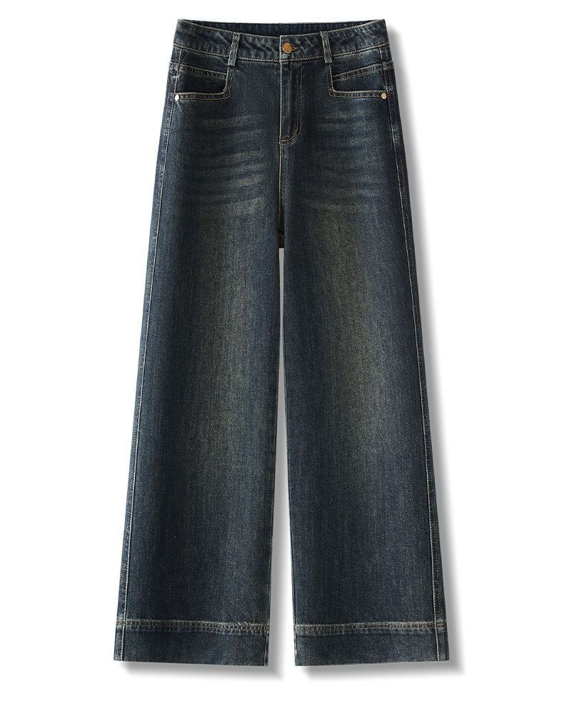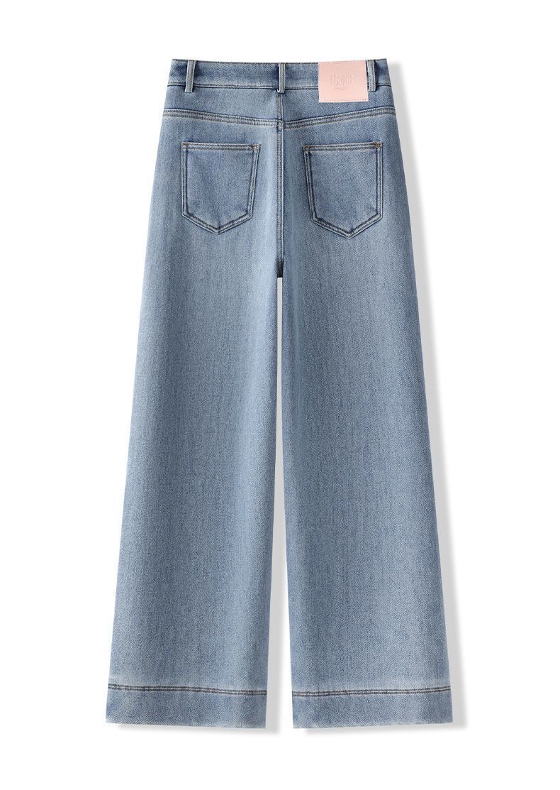 타닌 블루 좁은 와이드 레그 청바지 여자 봄과 가을 2025 새로운 도착 바지 올매치 스트레이트 바지