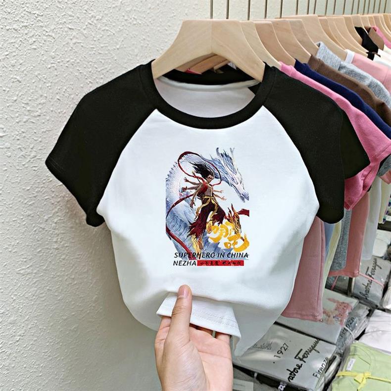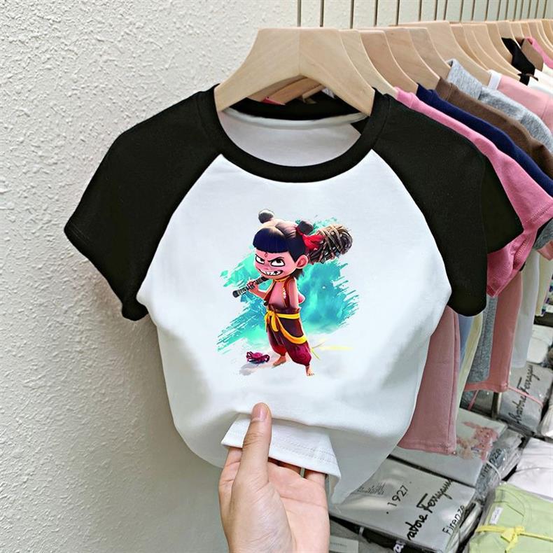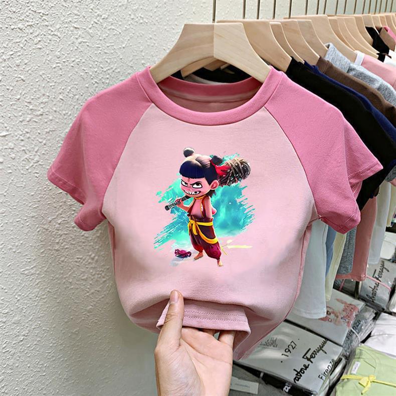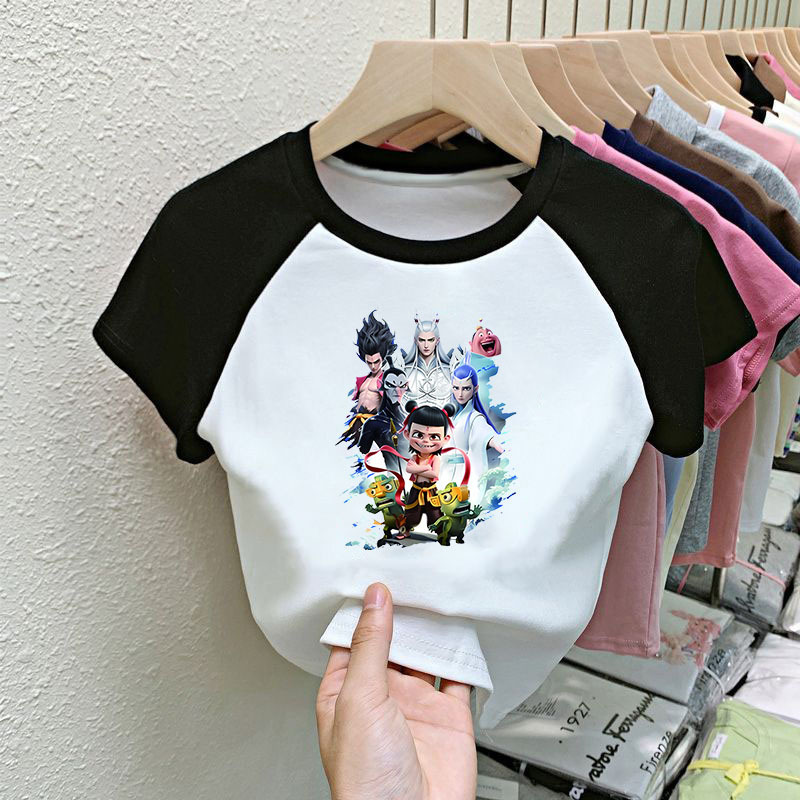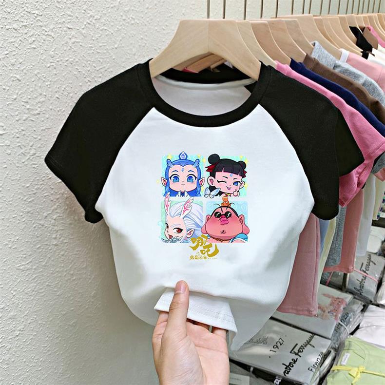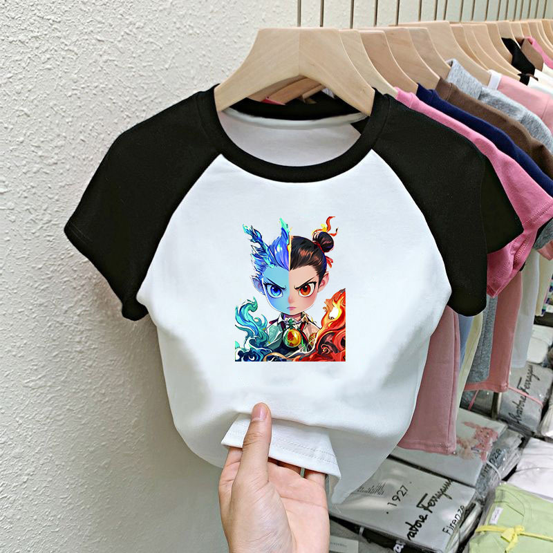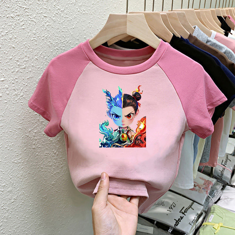 Nezha 티셔츠 어린이 반소매 2025 새 소년 여름 옷 어린이 면 반소매 여름 소녀상