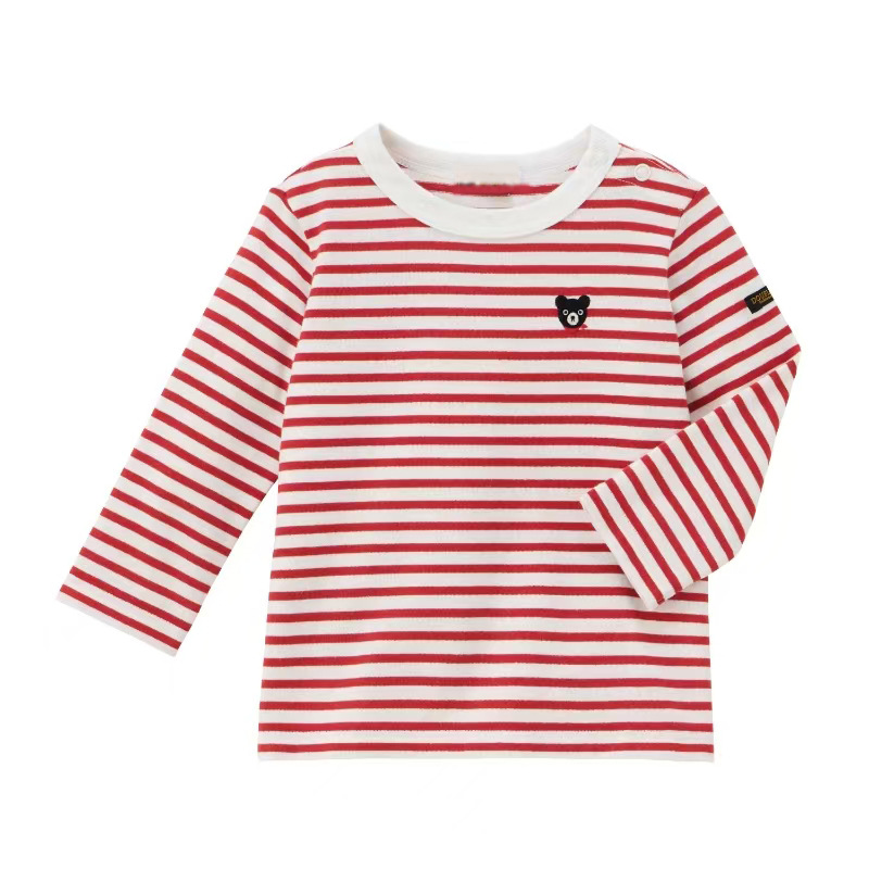 일본 미키 어린이 봄과 가을면 줄무늬 긴팔 티셔츠 소년 소녀 만화 둥근 목 상단 탄성베이스 셔츠