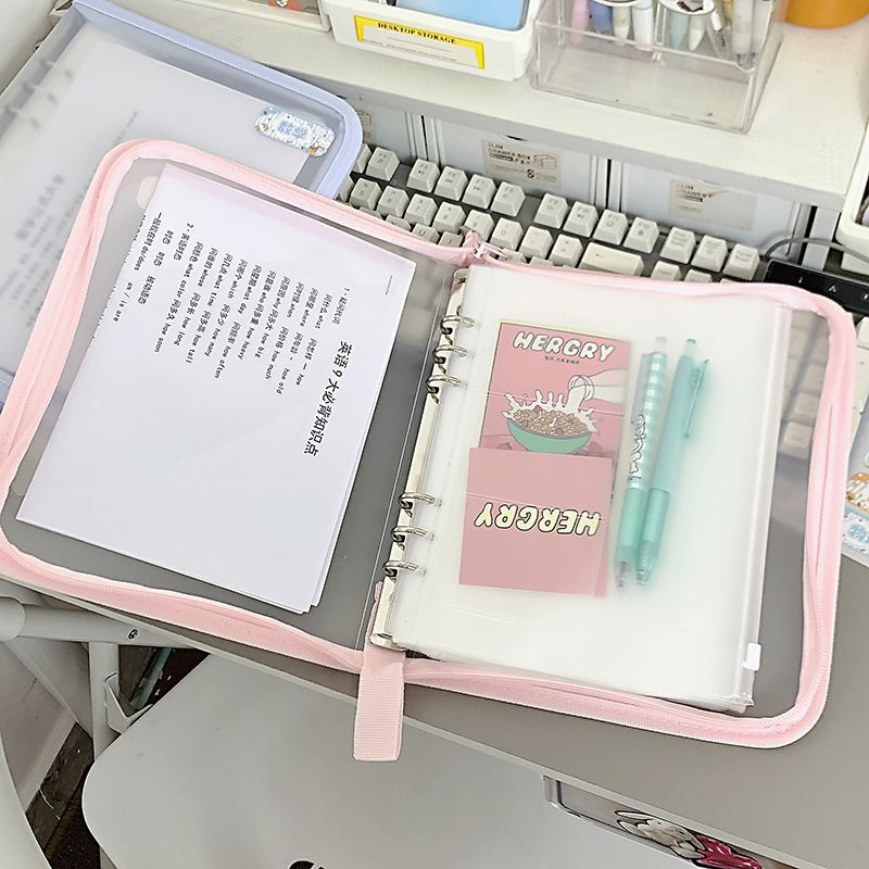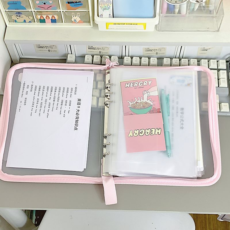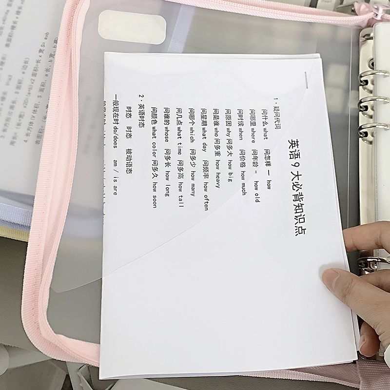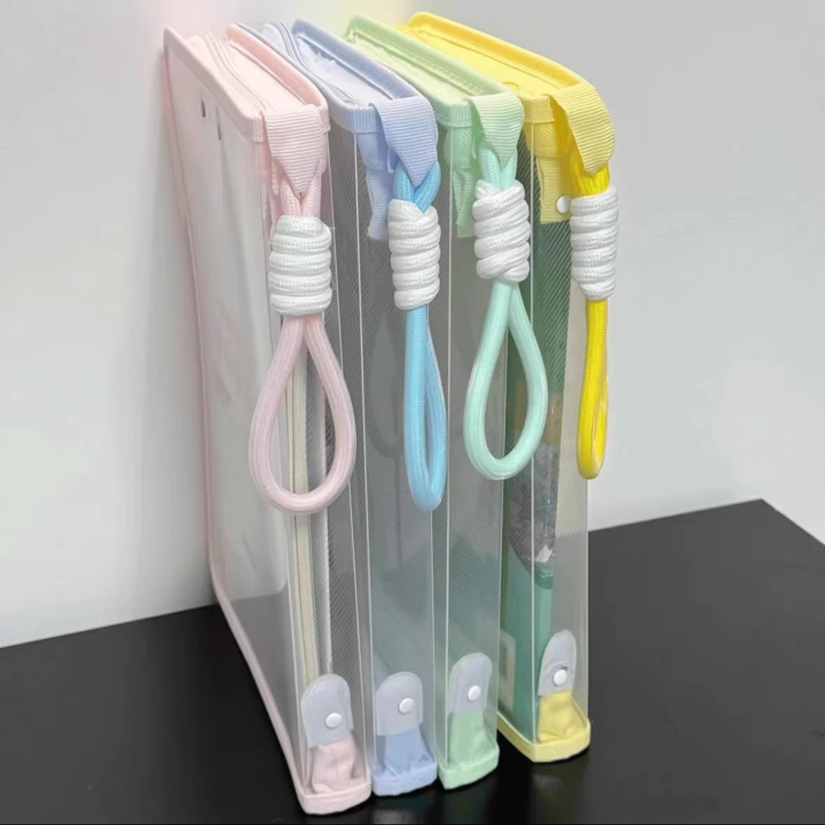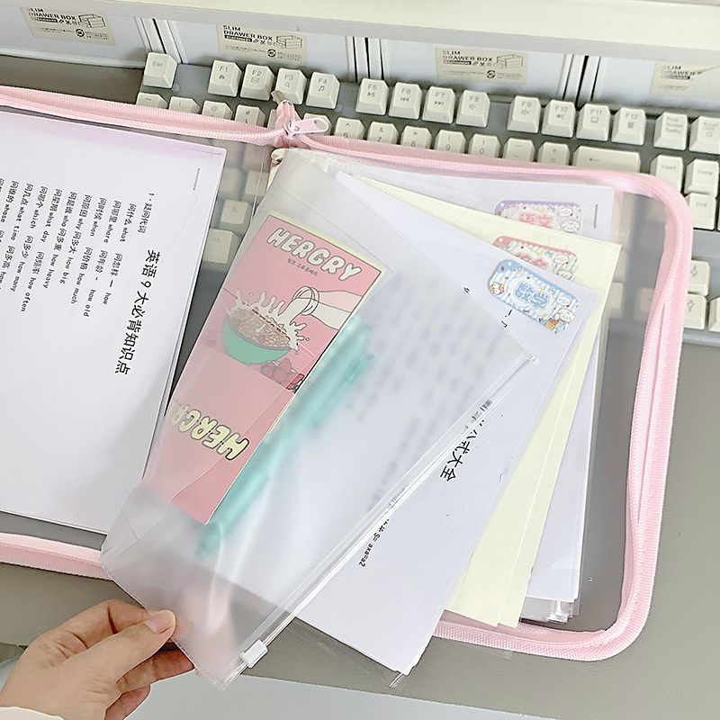 Macaron 투명한 A4 파일 가방 대용량 교과서 지퍼 학생 휴대용 두꺼운 방수 보관 가방