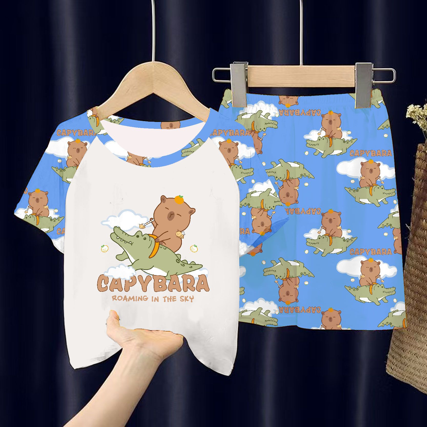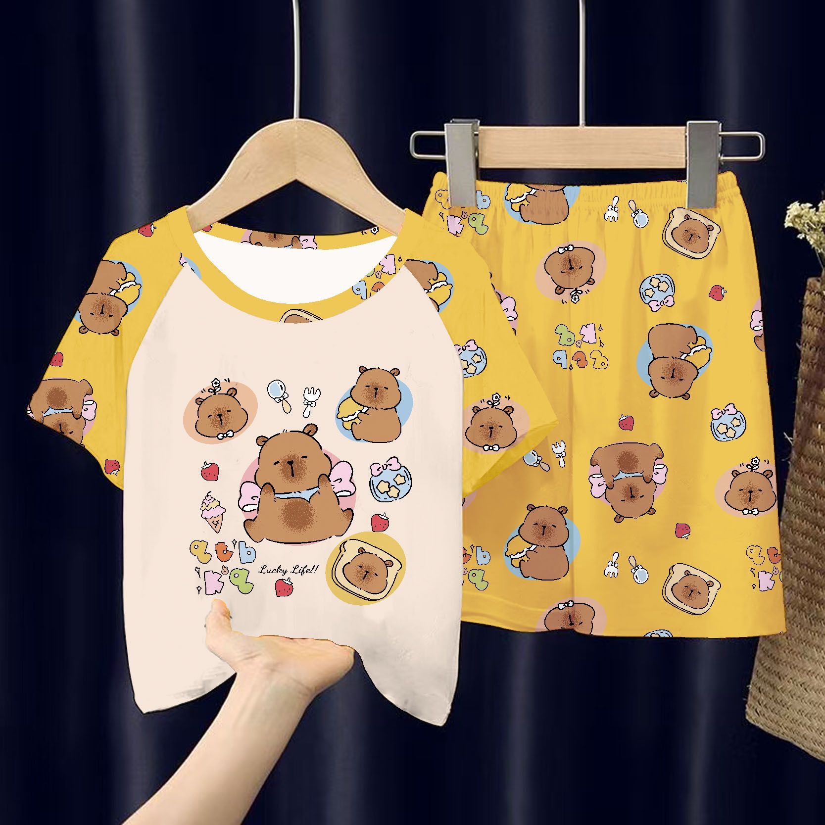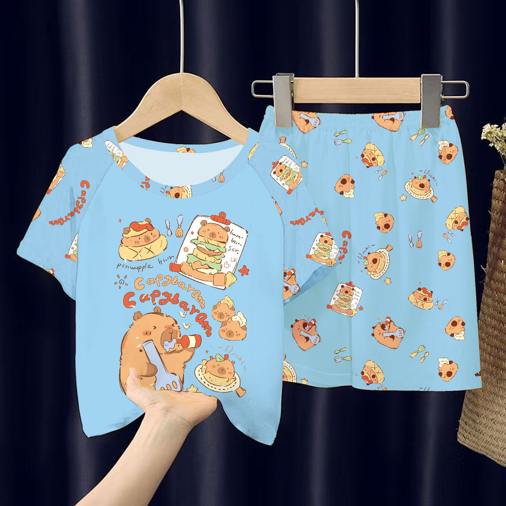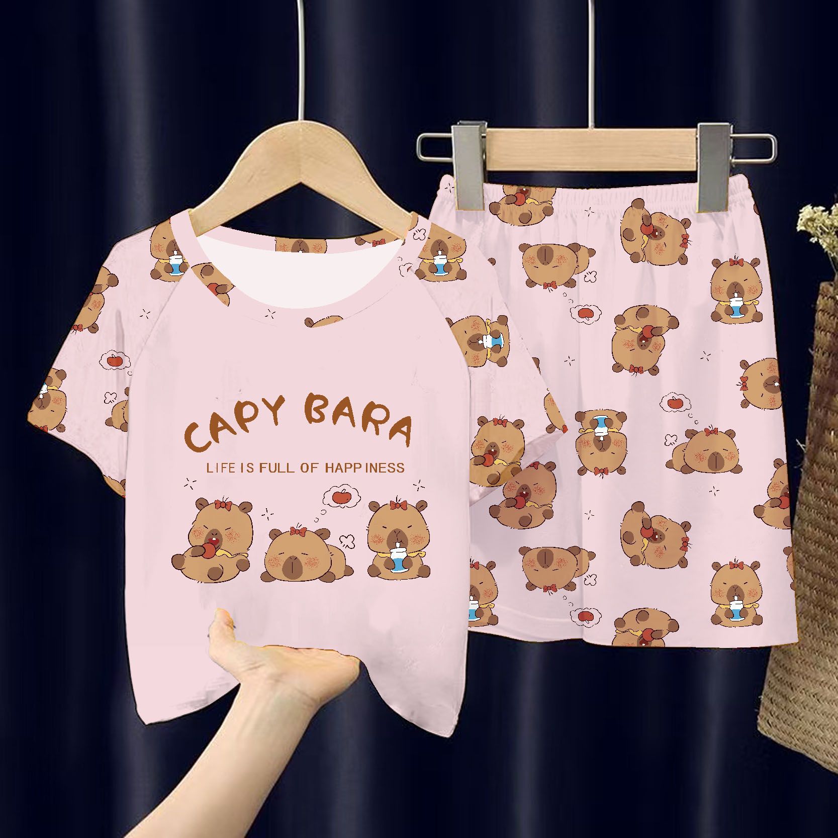2025 새로운 Kapibala 어린이 잠옷 만화 소녀 반팔 얇은 소년 캐주얼 홈 의류 도매 트렌드