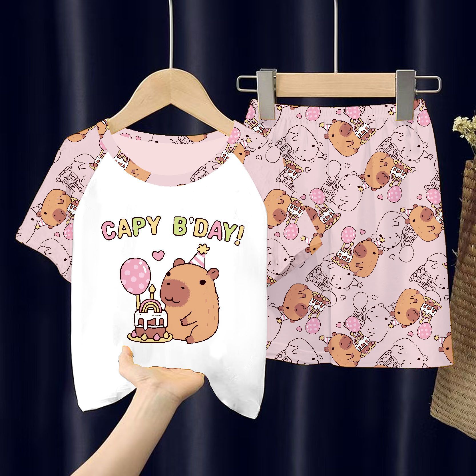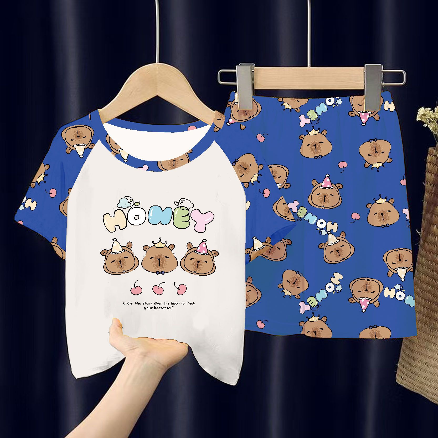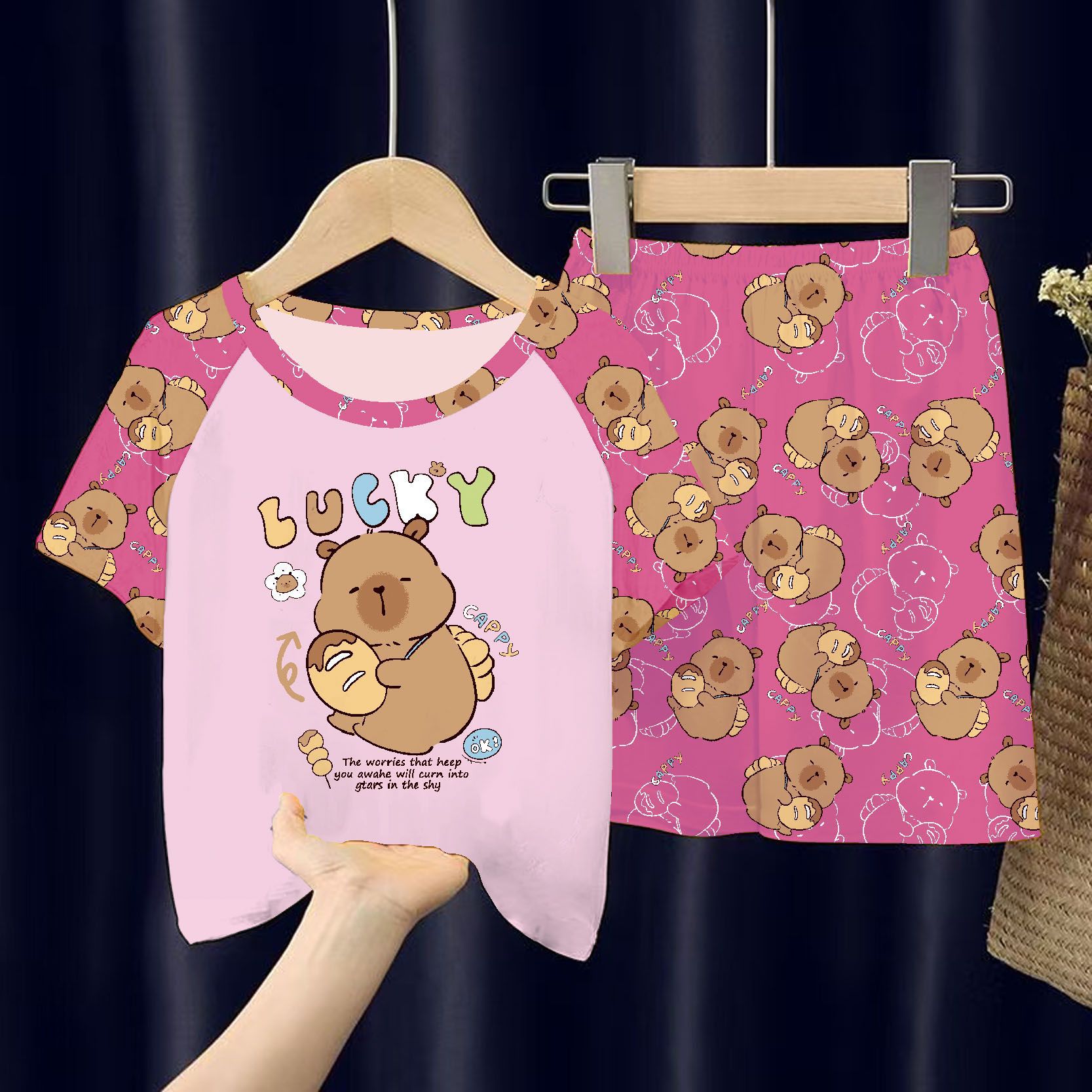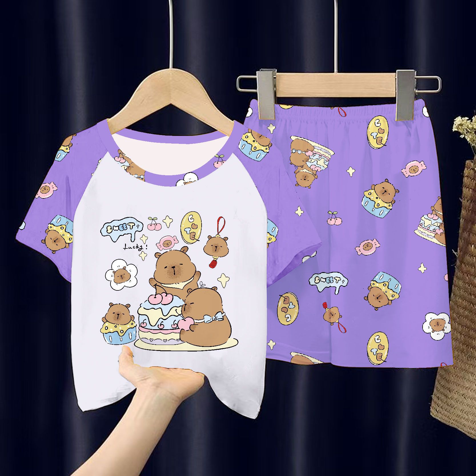 2025 새로운 Kapibala 어린이 잠옷 만화 소녀 반팔 얇은 소년 캐주얼 홈 의류 도매 트렌드