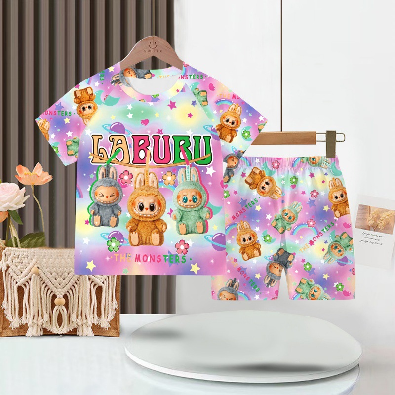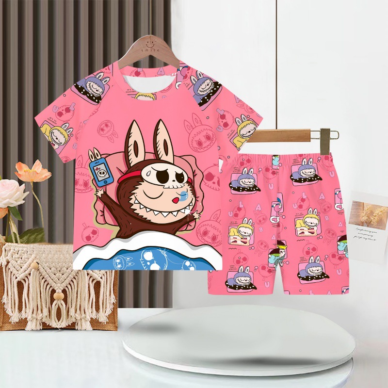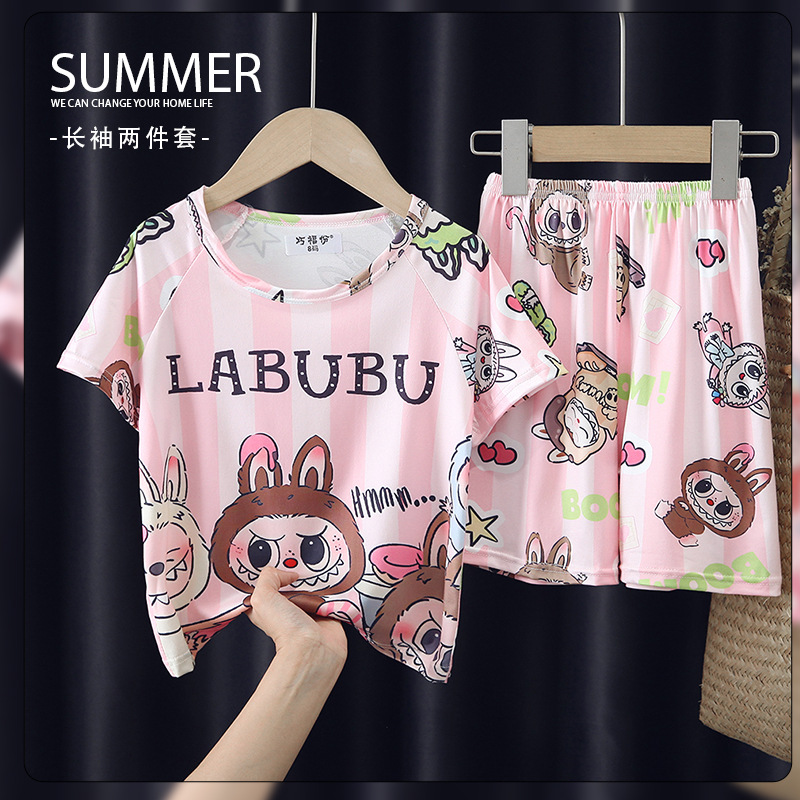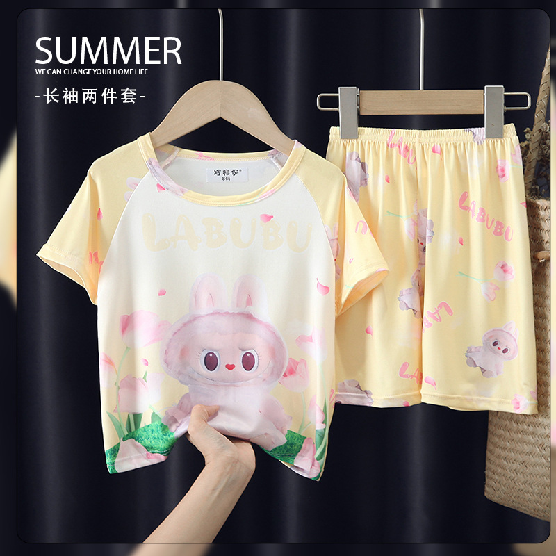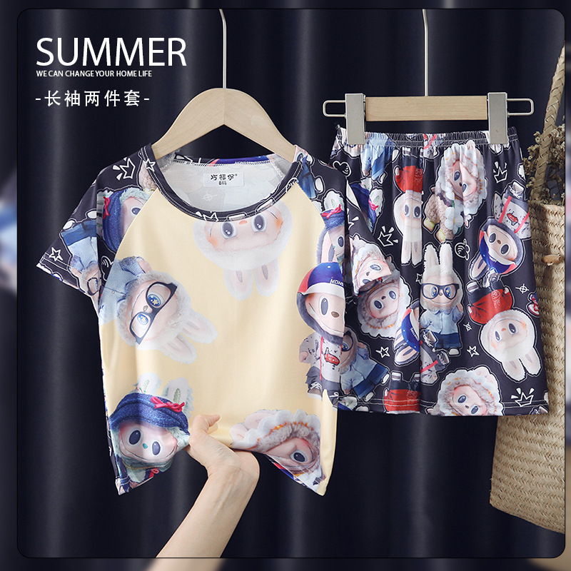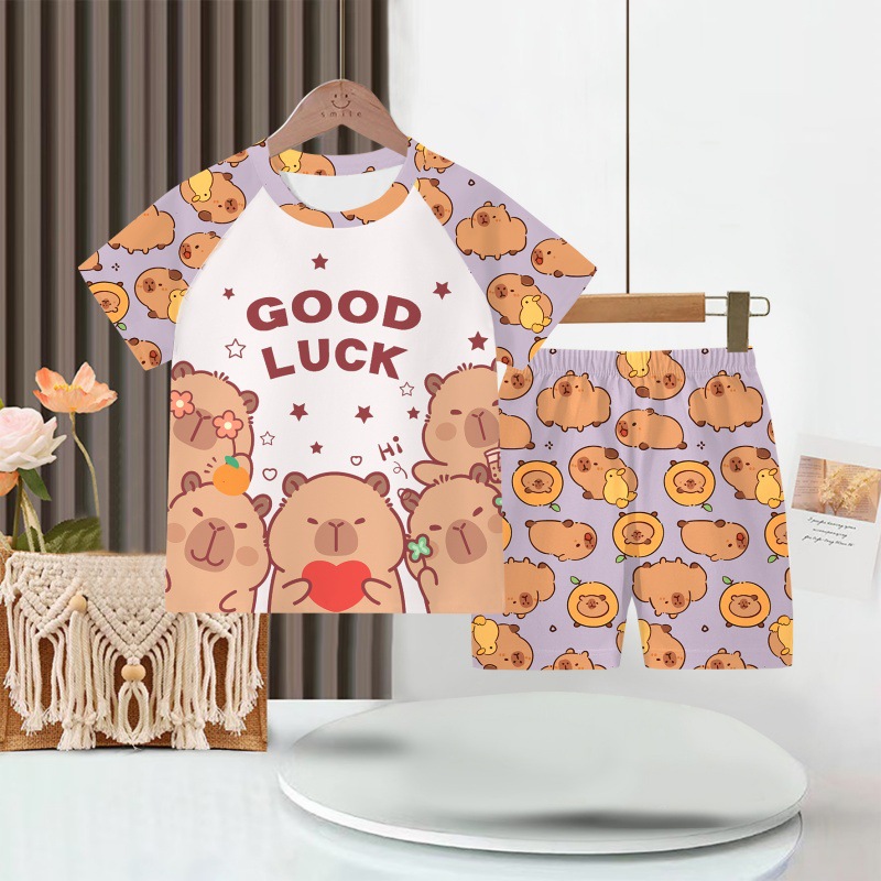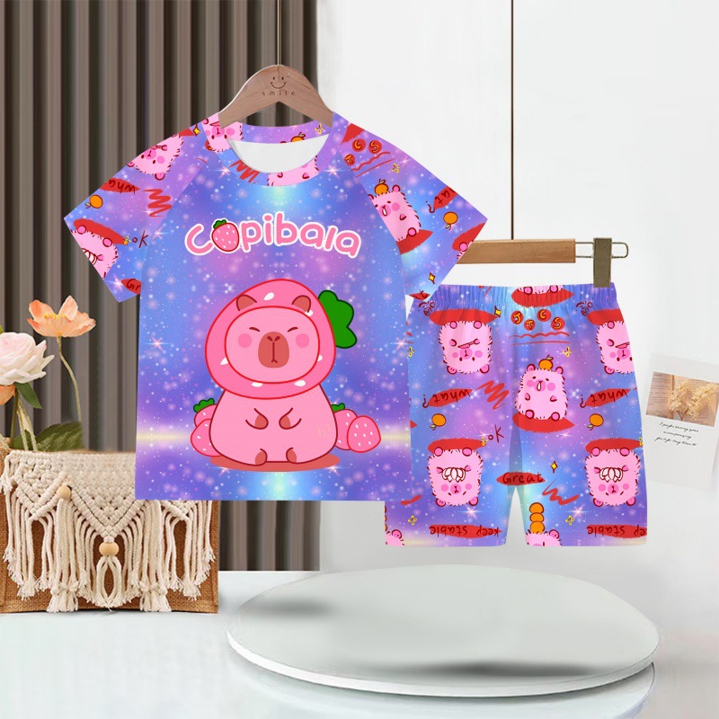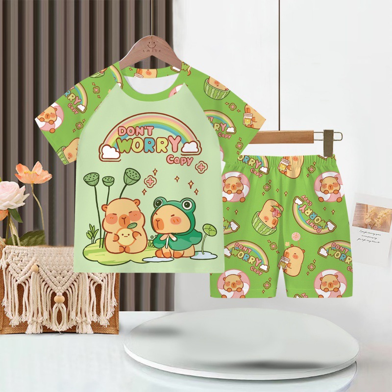 2025 새로운 Kapibala 어린이 잠옷 만화 소녀 반팔 얇은 소년 캐주얼 홈 의류 도매 트렌드