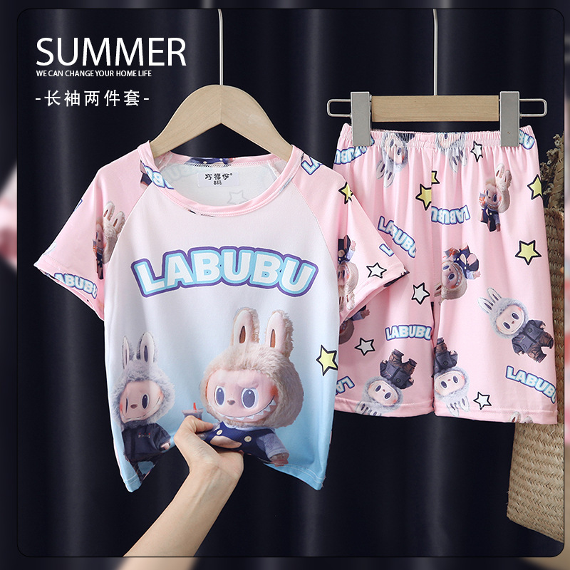 2025 새로운 Kapibala 어린이 잠옷 만화 소녀 반팔 얇은 소년 캐주얼 홈 의류 도매 트렌드스토어 가기