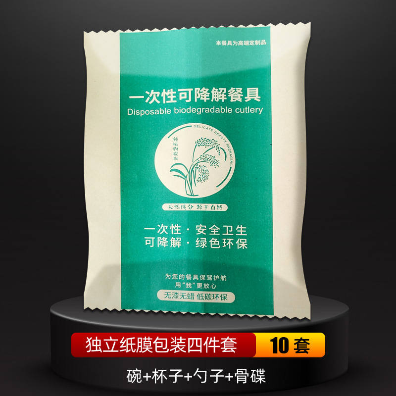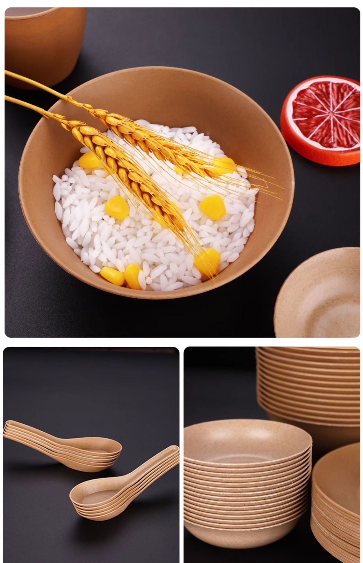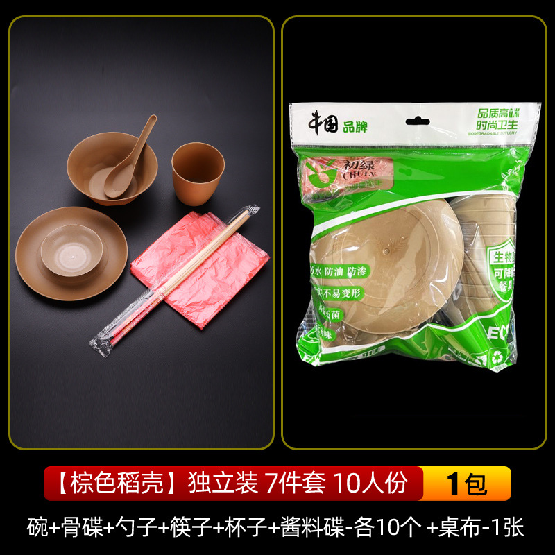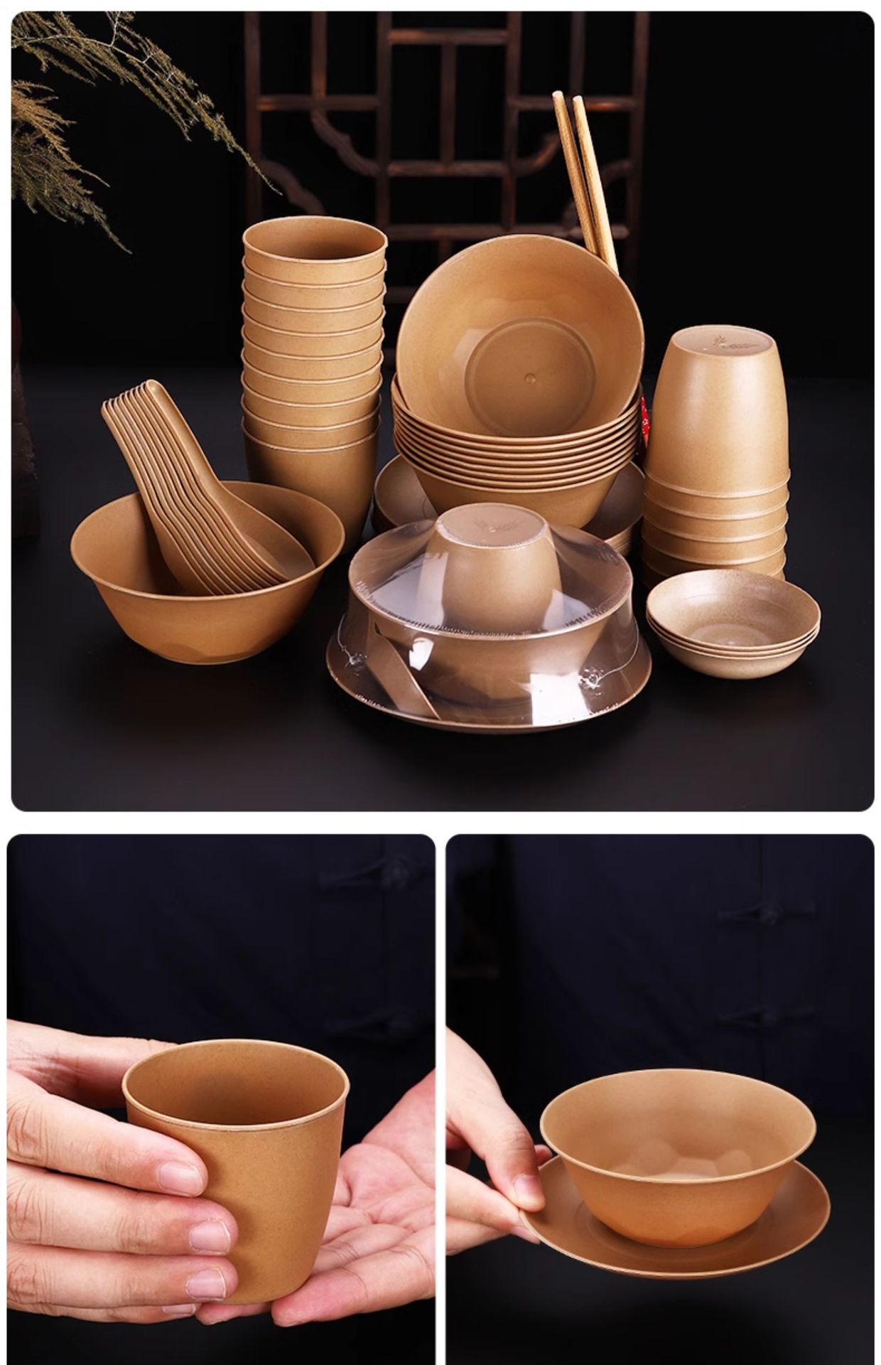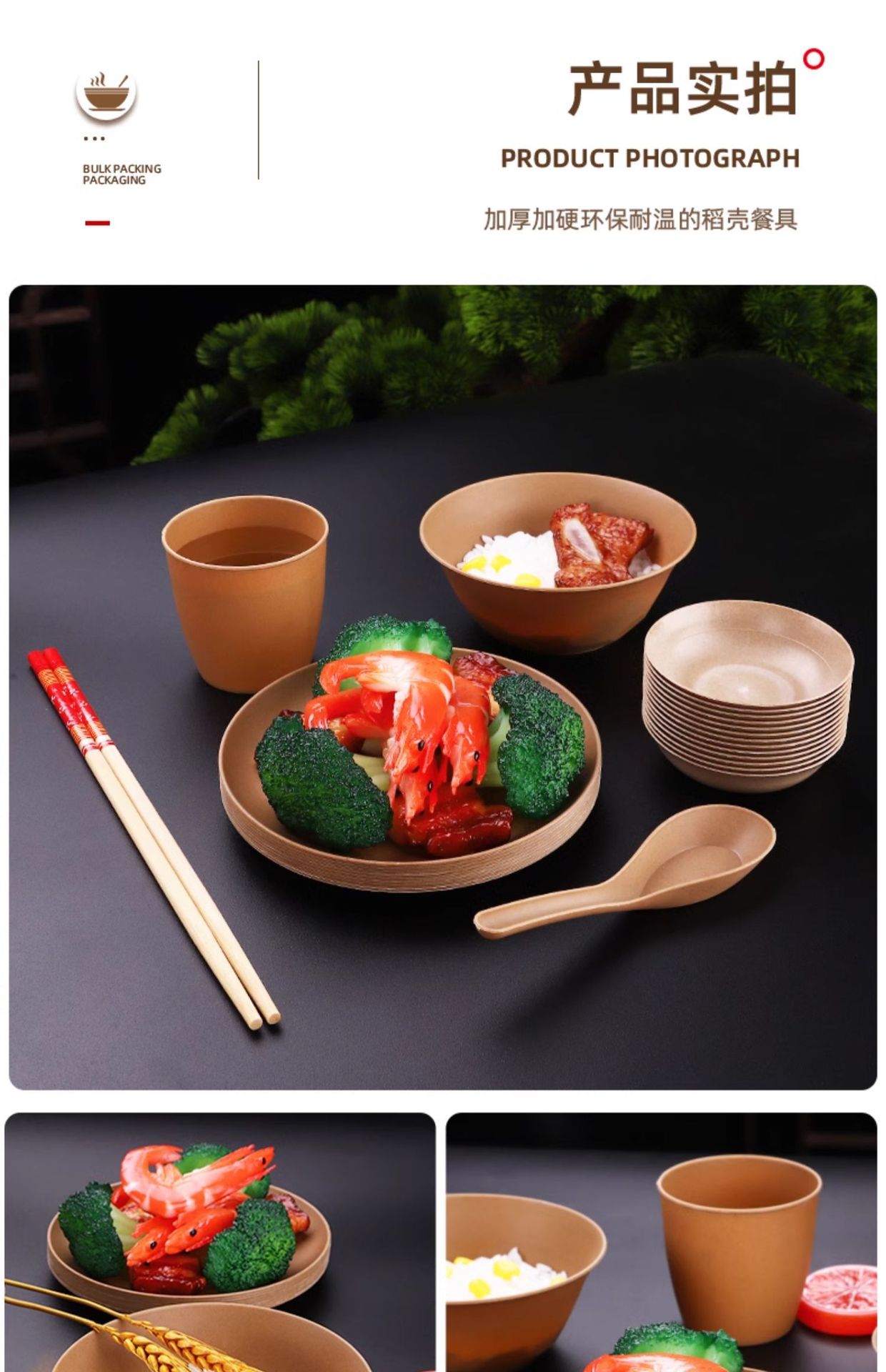 쌀겨 일회용 식기 그릇, 젓가락, 접시 및 컵 세트 식품 가정용 결혼식 연회 피크닉 밥 그릇 3~4개 세트스토어 가기