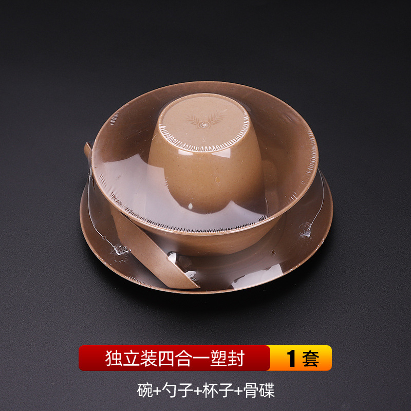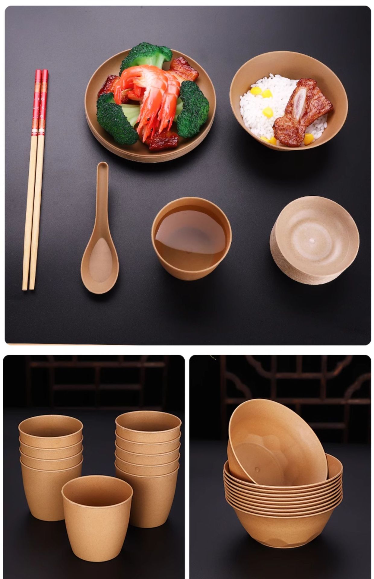 쌀겨 일회용 식기 그릇, 젓가락, 접시 및 컵 세트 식품 가정용 결혼식 연회 피크닉 밥 그릇 3~4개 세트
