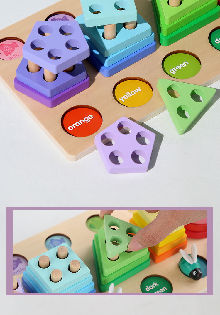제조 업체 도매 국경 간 뜨거운 판매 나무 어린이 조기 교육 교육 장난감 3-in-one 다기능 꿀벌 세트 기둥