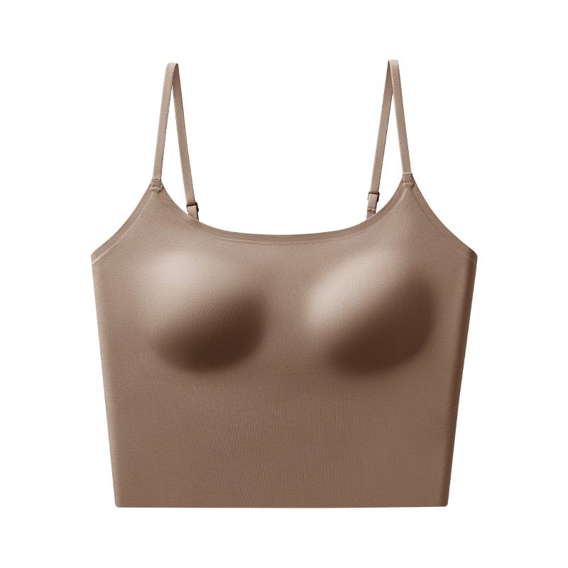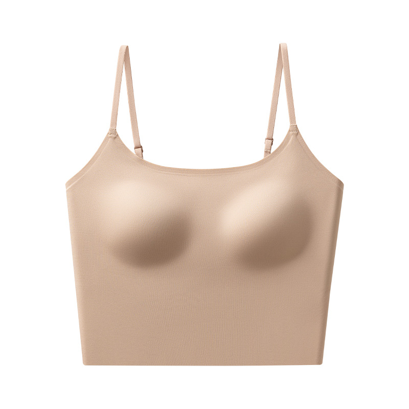 액체 재단 속옷 여성용 아이스 실크 원활한 보이지 않는 유방 슬링 브래지어 여름을위한 안티 러닝 스킨 컬러 조끼 통합
