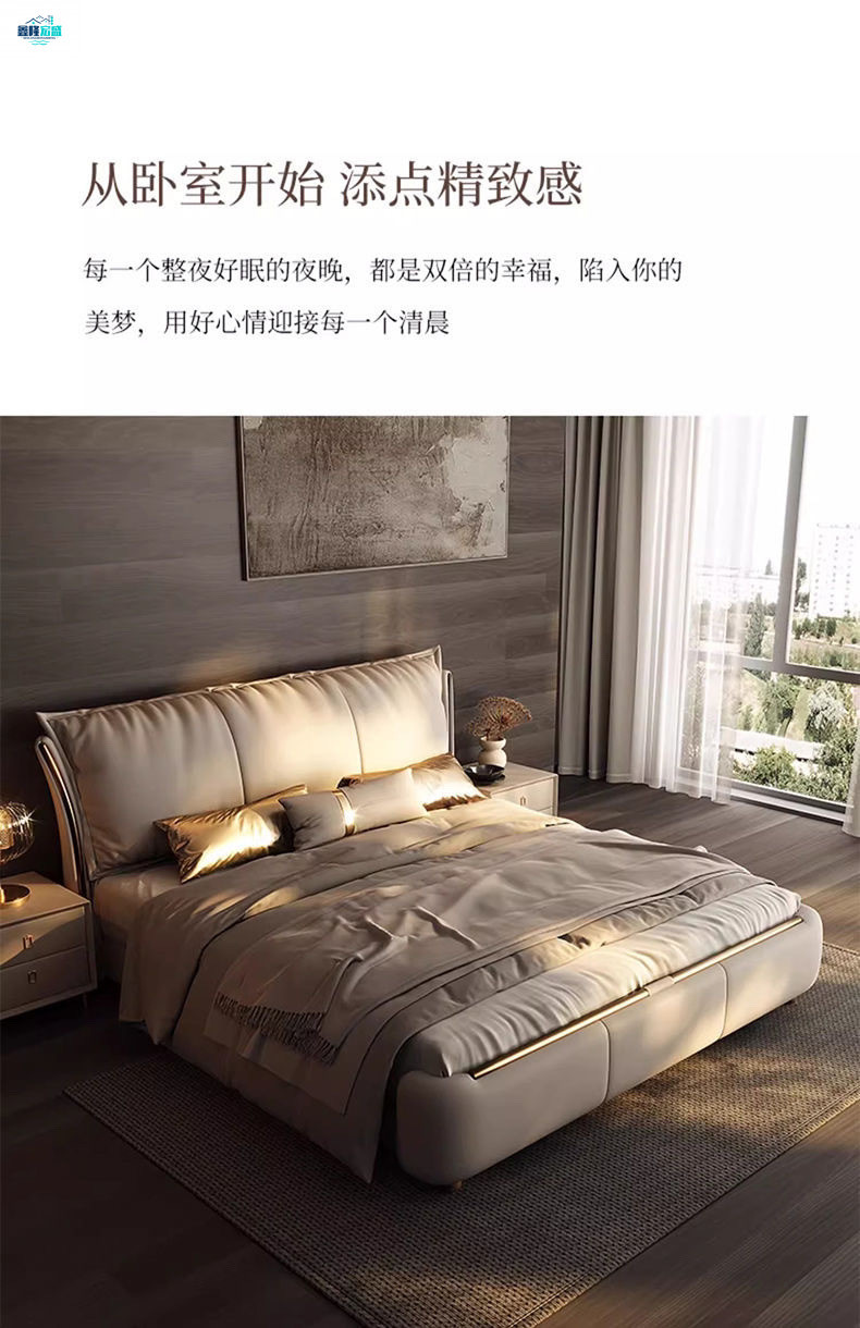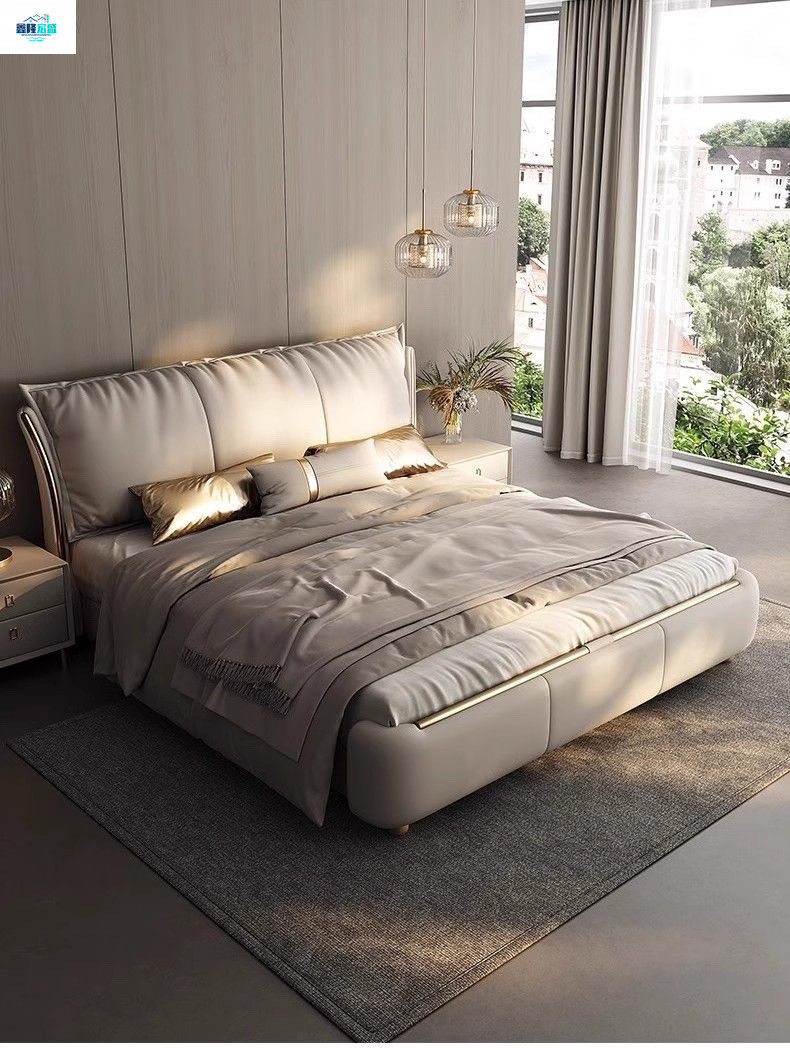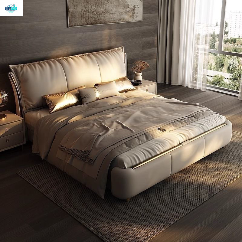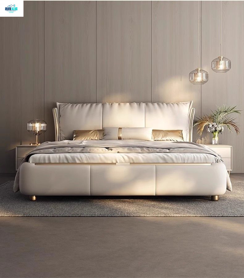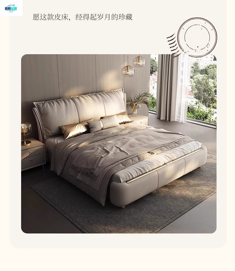 骆赋意式高端轻奢真皮卧大床现代简约主卧室皮艺储物双人床婚床