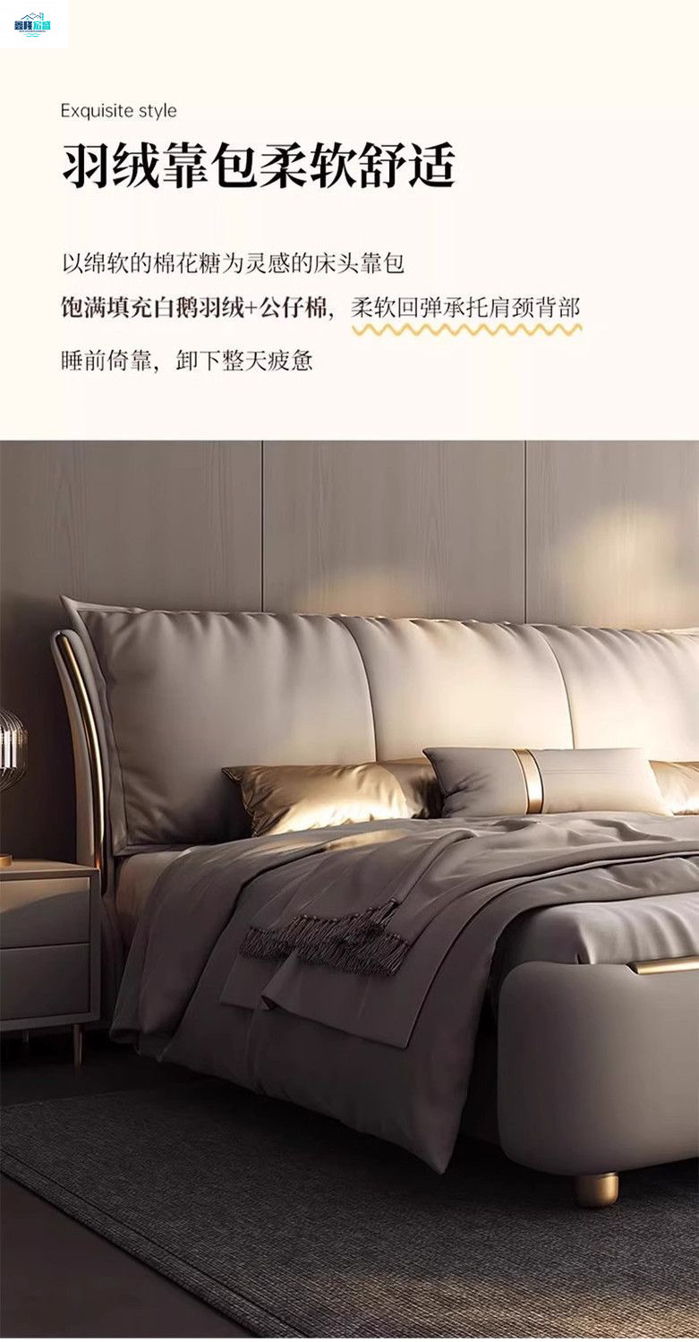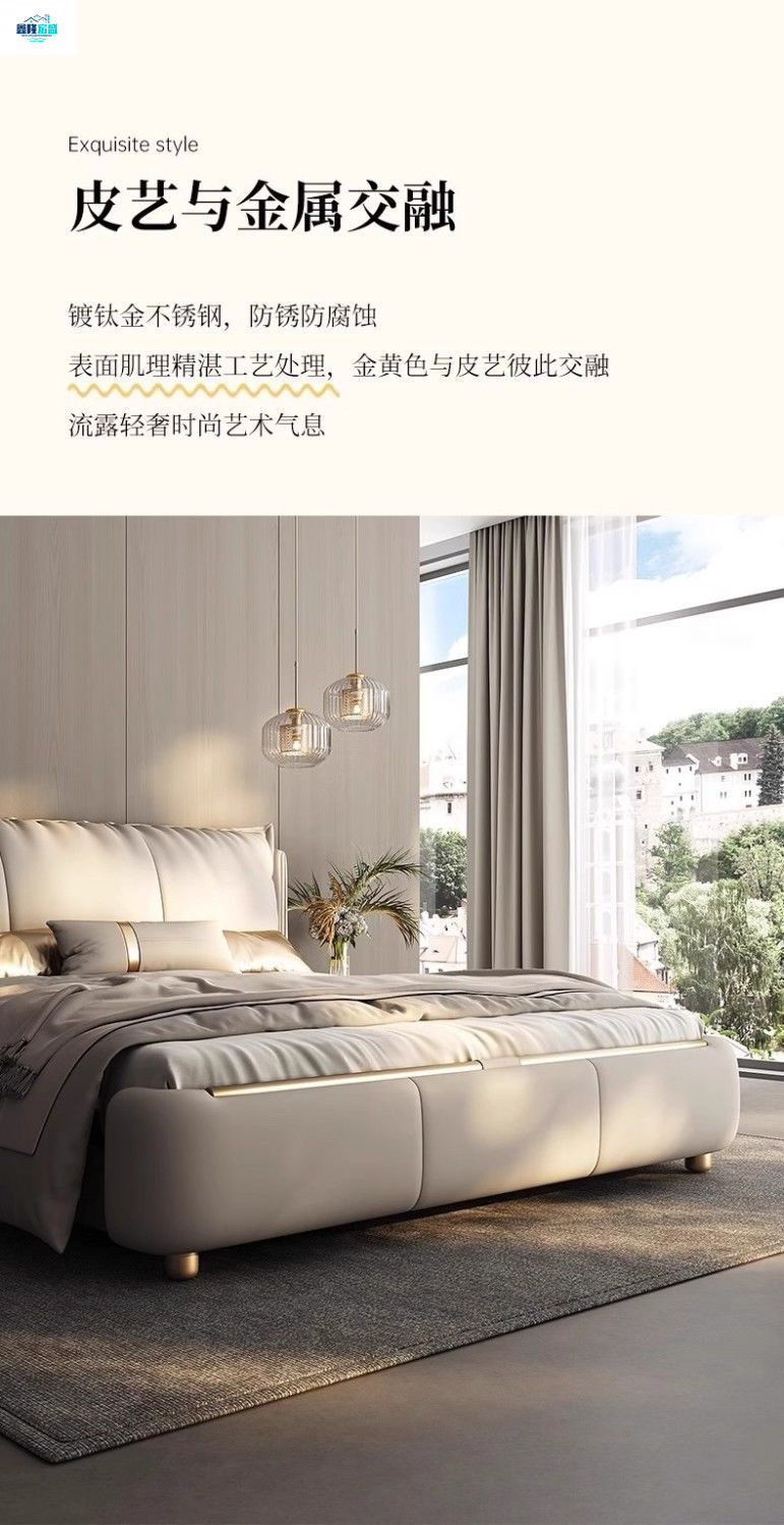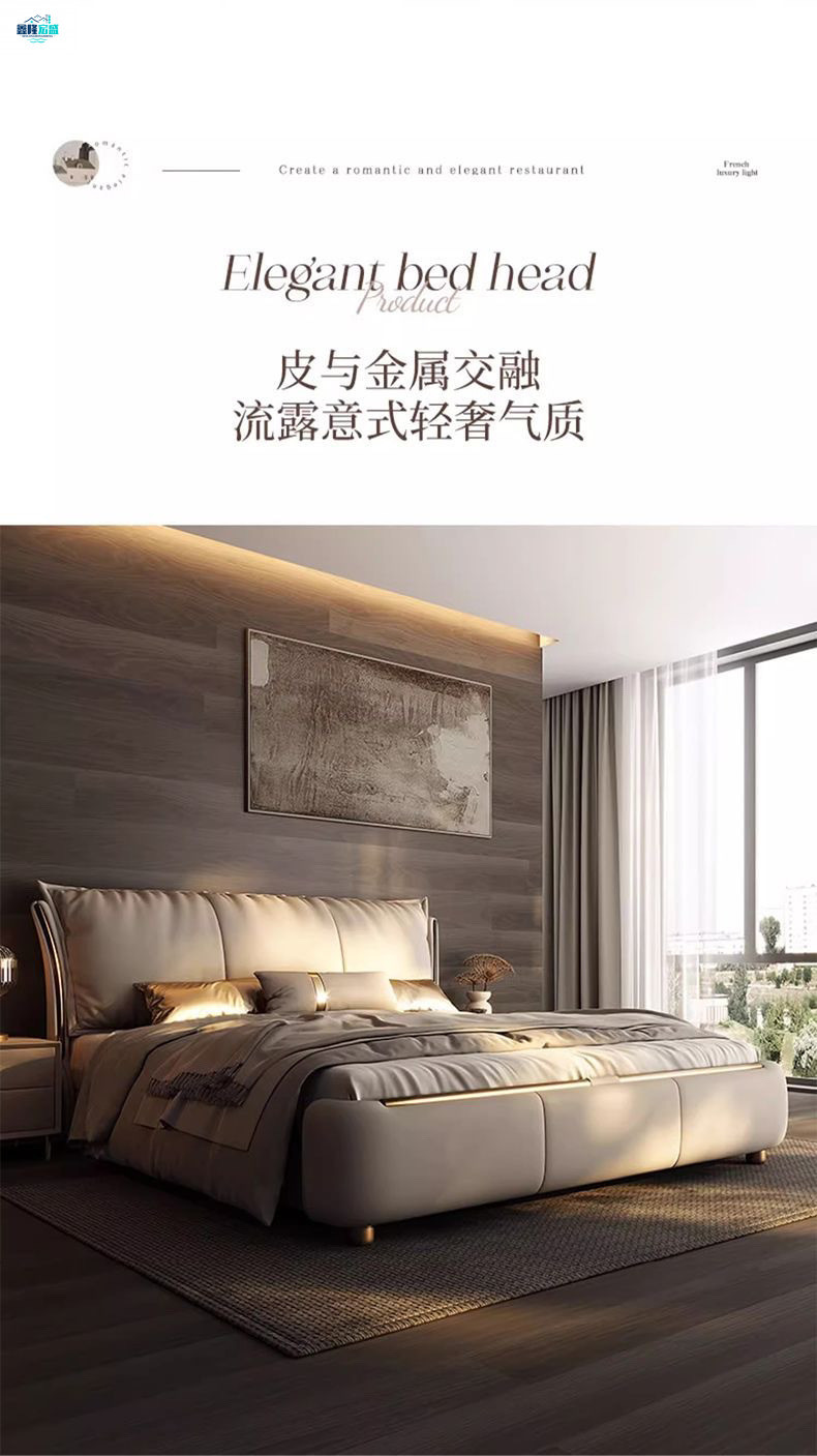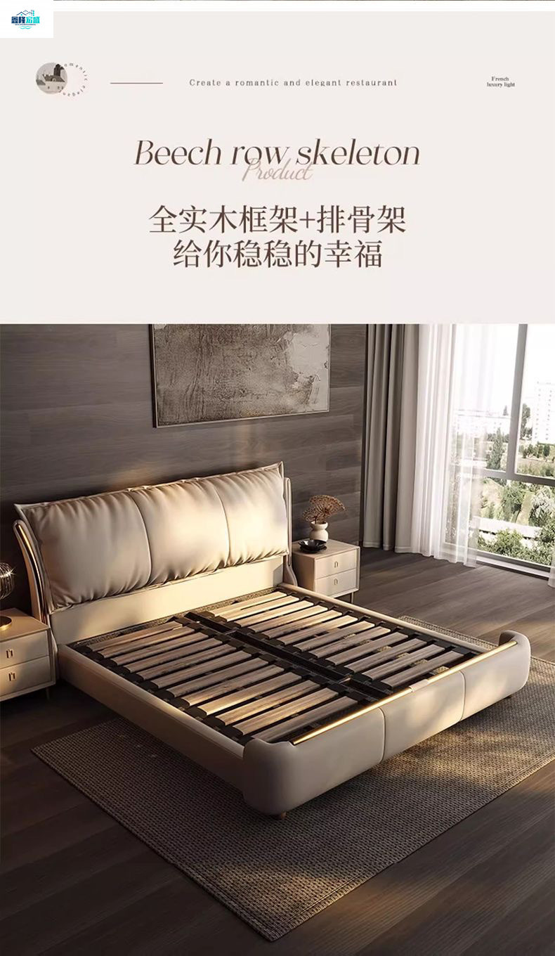 骆赋意式高端轻奢真皮卧大床现代简约主卧室皮艺储物双人床婚床