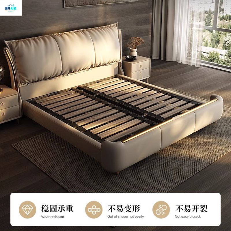 정품 가죽 이탈리아 고급 고급 가죽 침실 침대 현대 간단한 마스터 침실 가죽 아트 보관 더블 침대 웨딩 침대스토어 가기