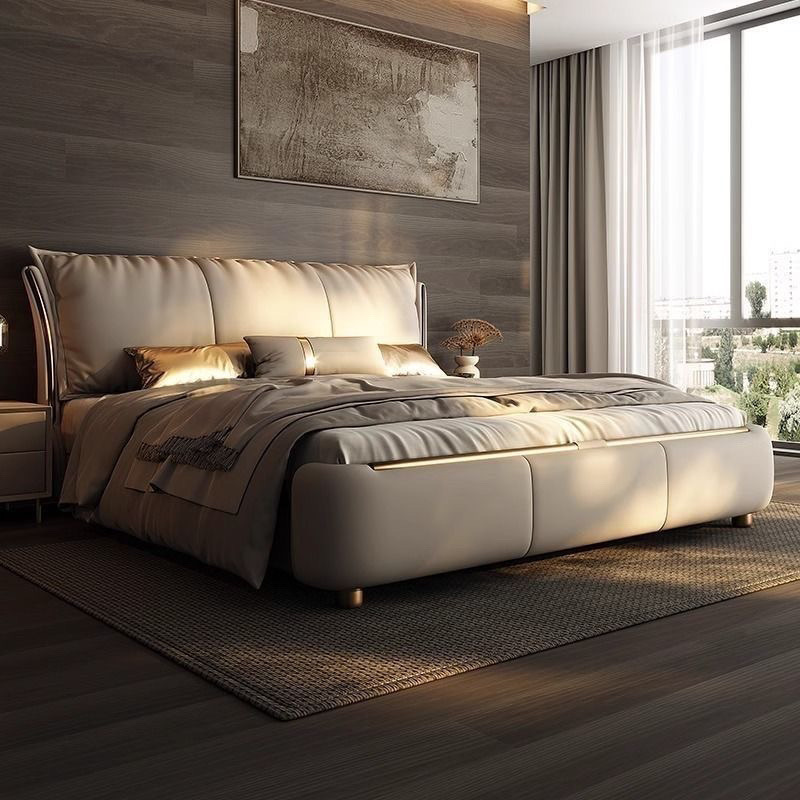 정품 가죽 이탈리아 고급 고급 가죽 침실 침대 현대 간단한 마스터 침실 가죽 아트 보관 더블 침대 웨딩 침대