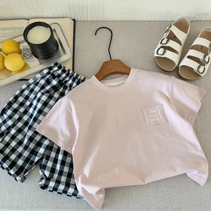 여름 새 어린이 반팔 티셔츠 소년 소녀 솔리드 컬러 크루 넥 탑 베이비 스타일 올매치 캐주얼 반소매 셔츠