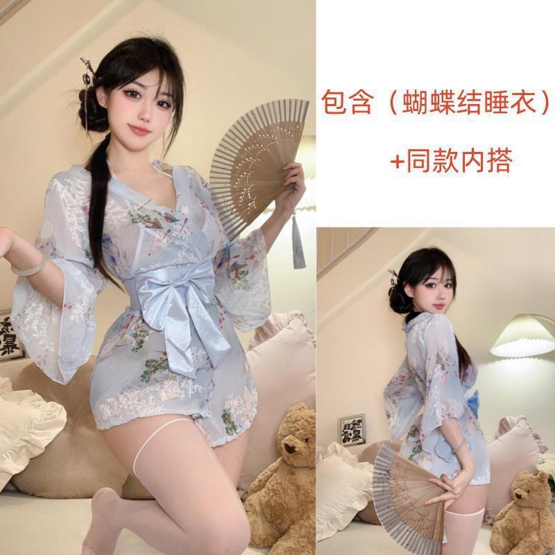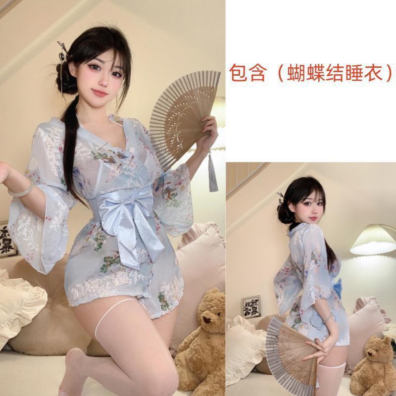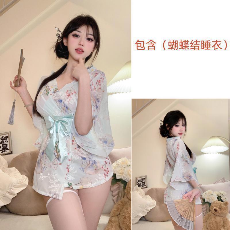 달콤한 활 인쇄 기모노 일본 유니폼 데이트 배틀 로브 메쉬 나이트 가운 스커트 목욕 가운 나이트웨어 홈 의류 여름스토어 가기