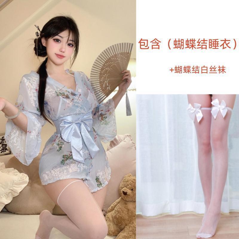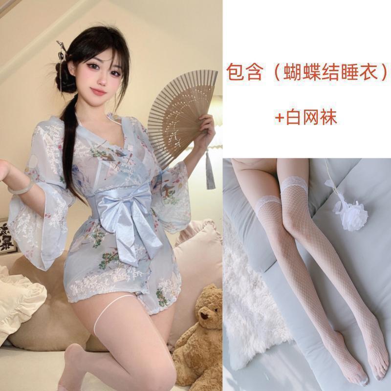 • 파란 꽃 기모노 + 흰색 망사 스타킹