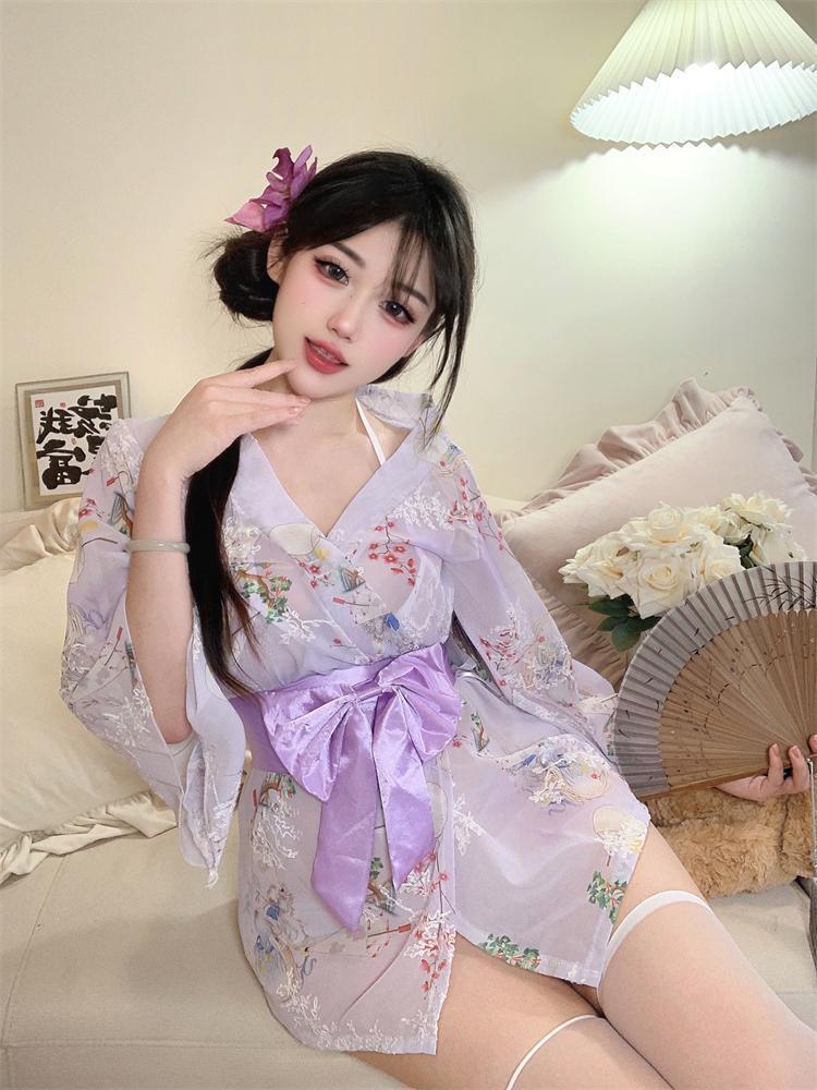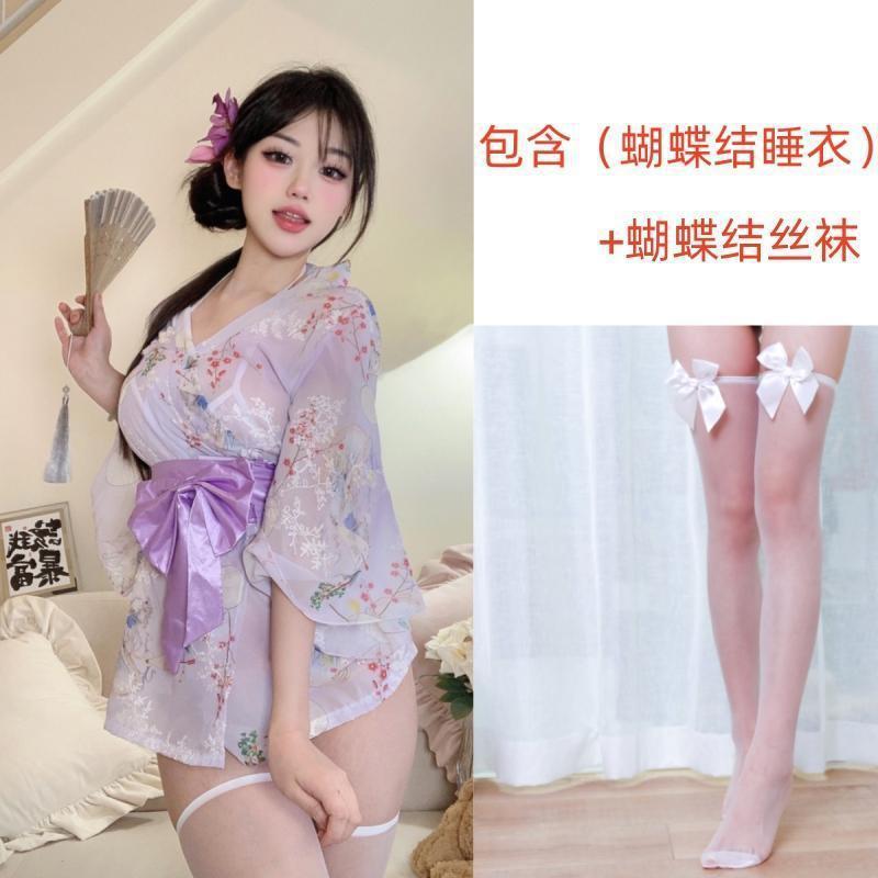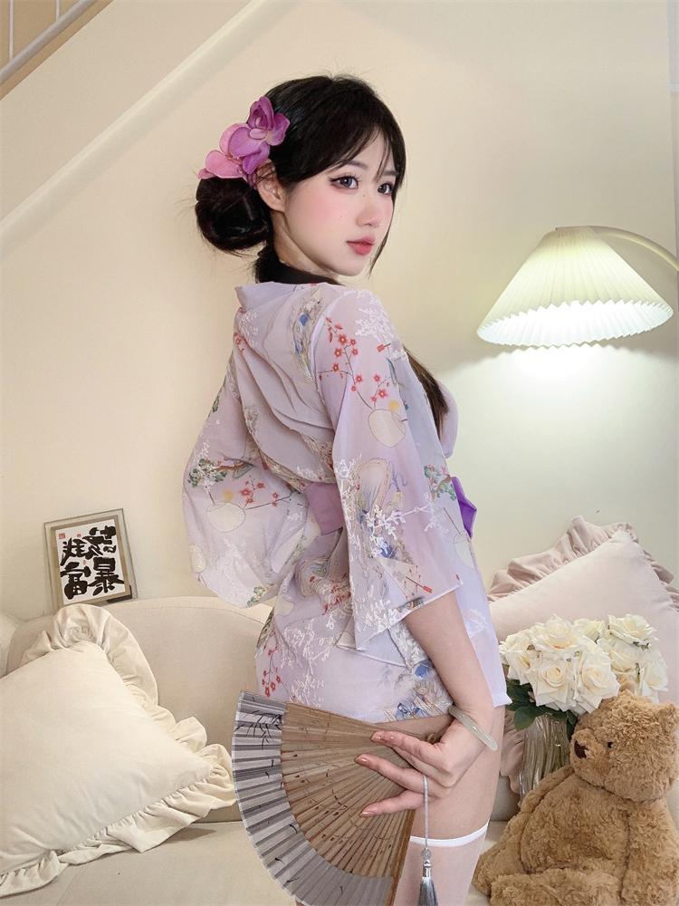• 보라색 꽃 기모노 + 흰색 망사 스타킹