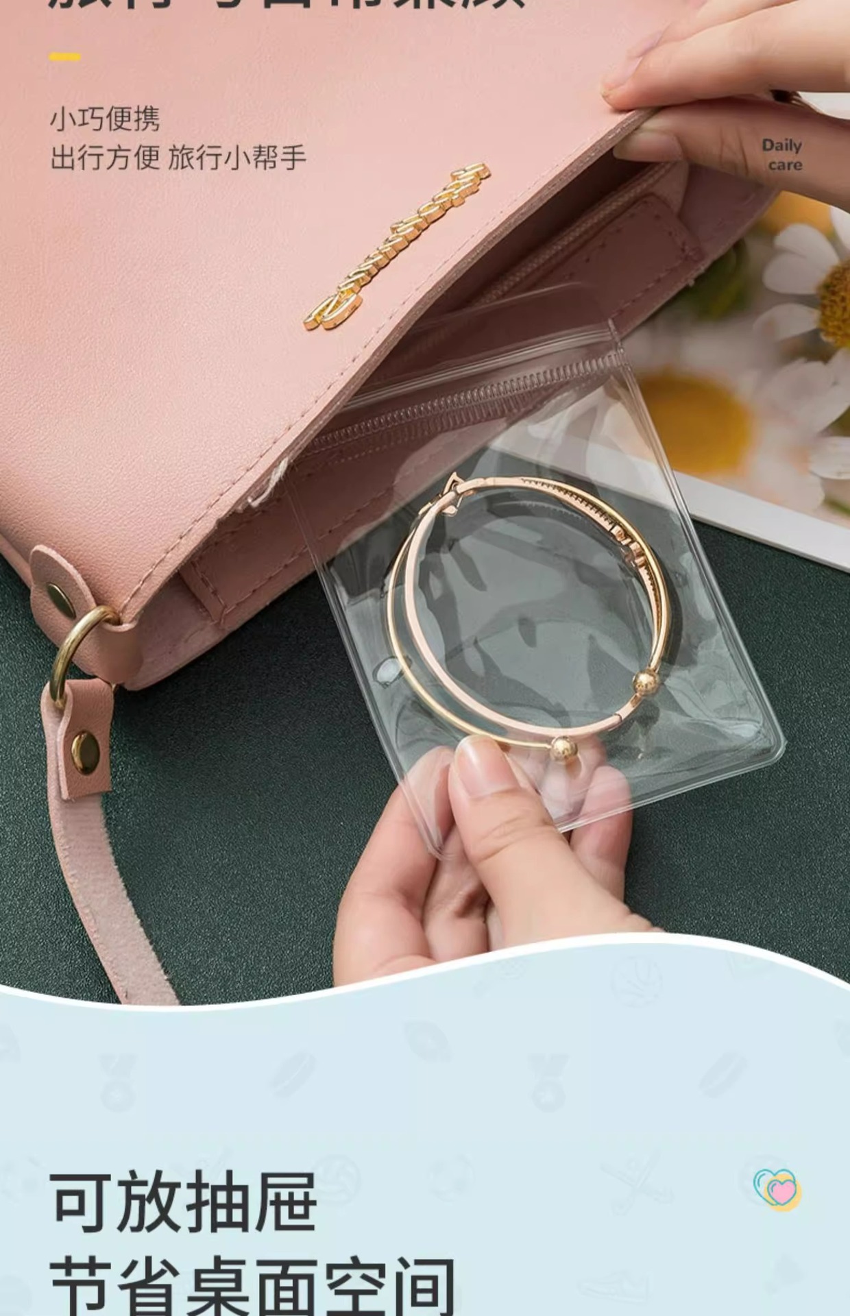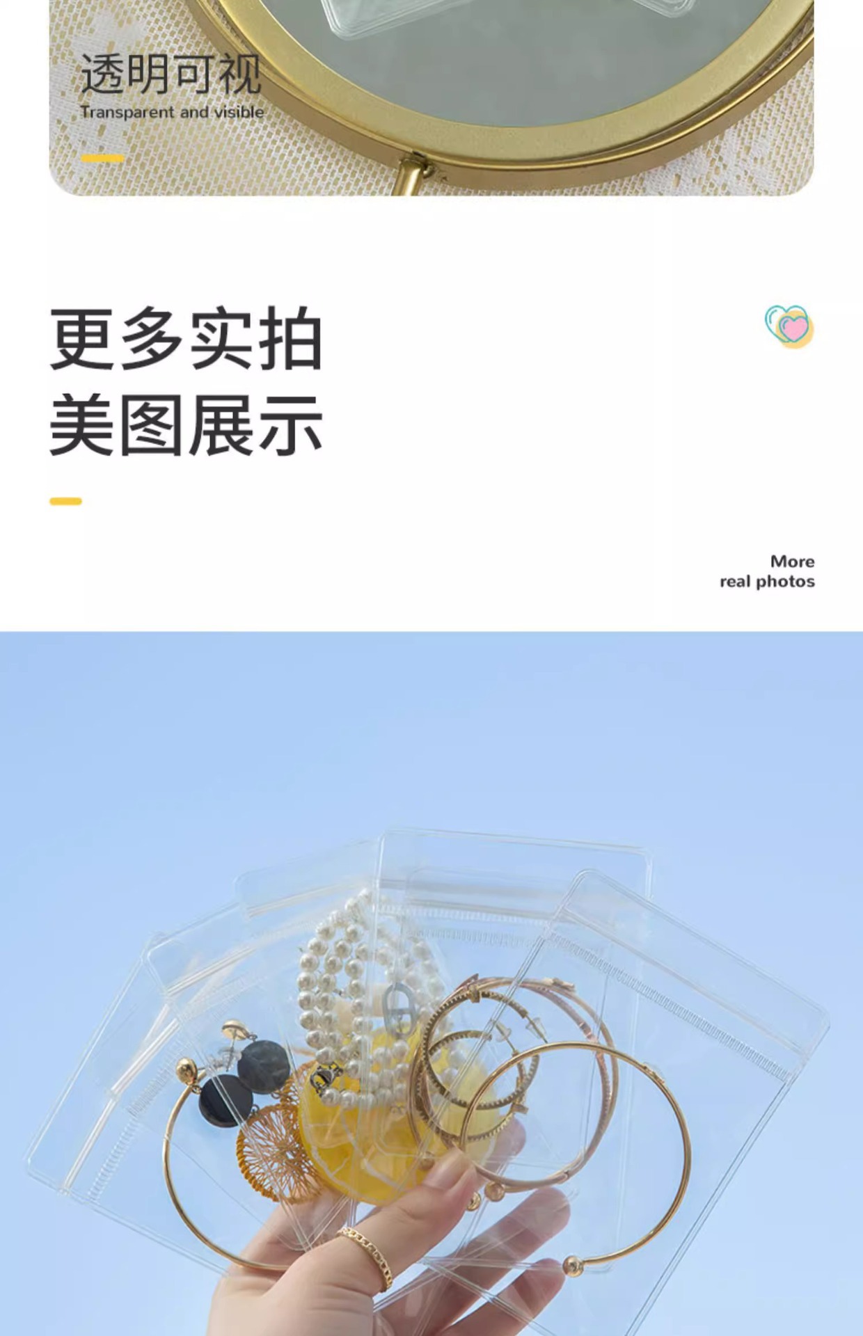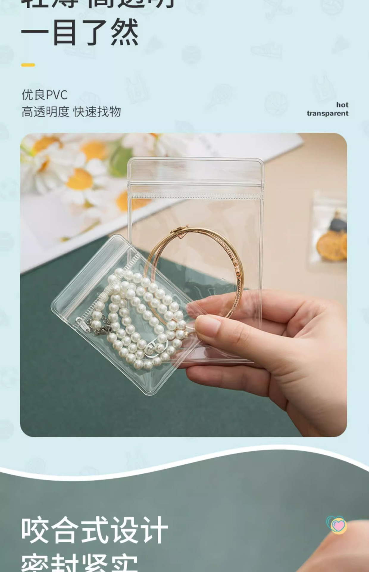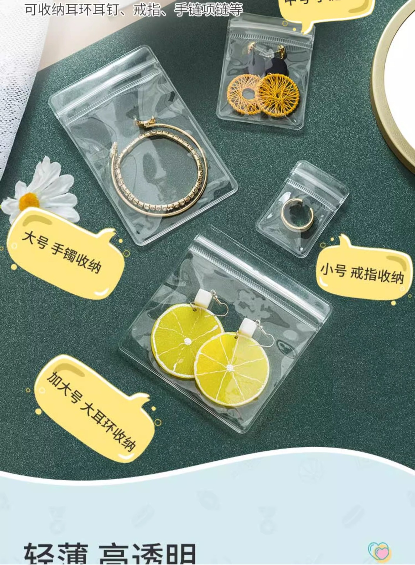 보석 항산화 밀봉 가방 PVC 지퍼 잠금 가방 보석 상자 보관 보석 귀걸이 목걸이 휴대용 투명 가방