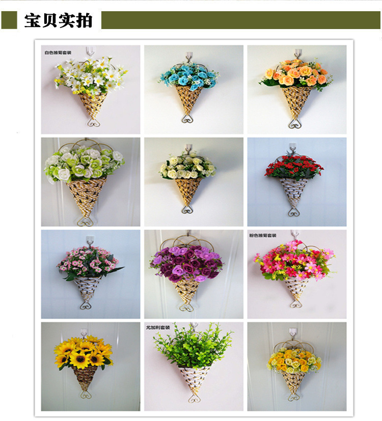 목가적 인 벽걸이 꽃 세트 식물 재배 가짜 꽃 세트 꽃 바구니 장식 거실 벽걸이 해바라기 꽃스토어 가기