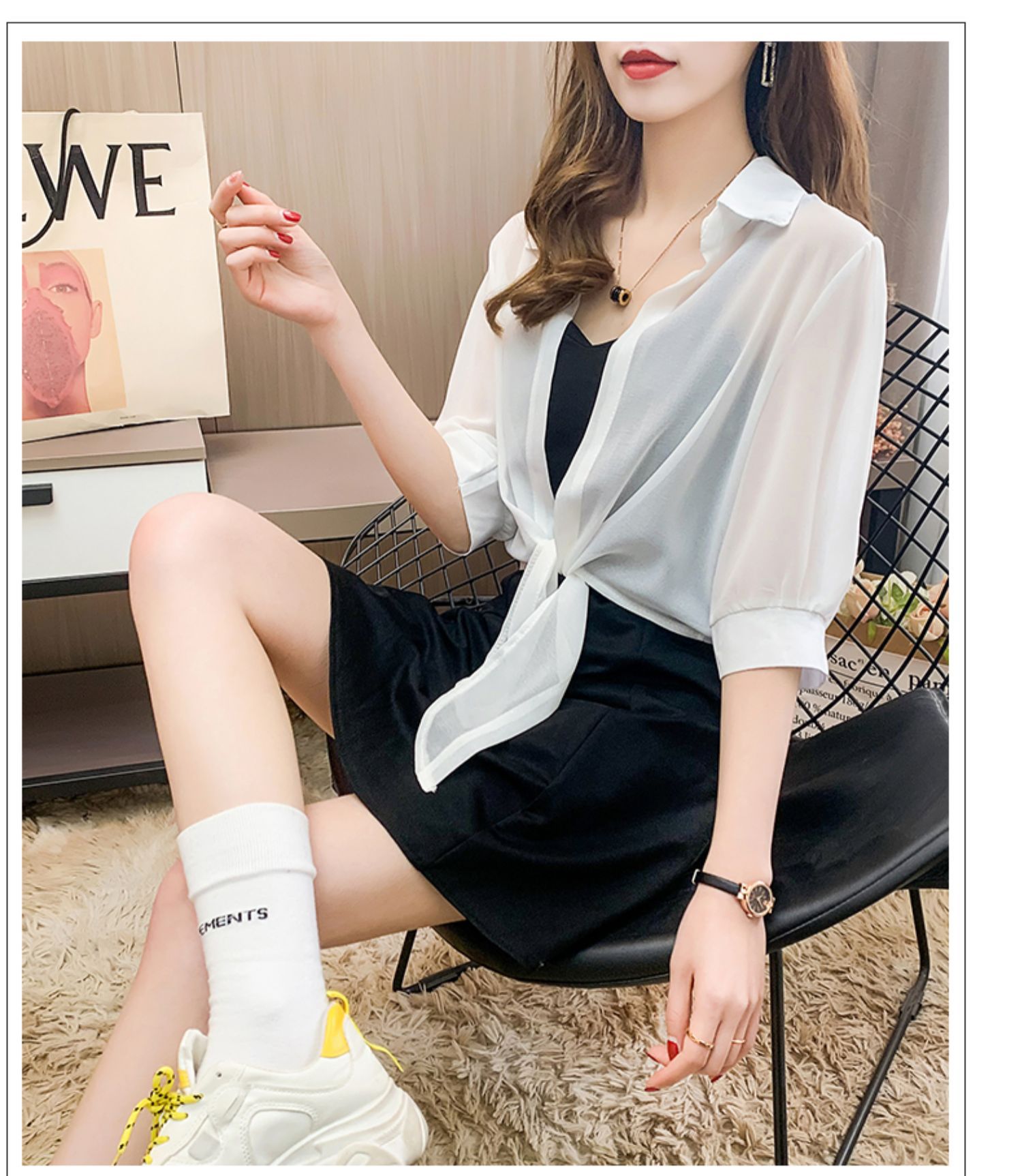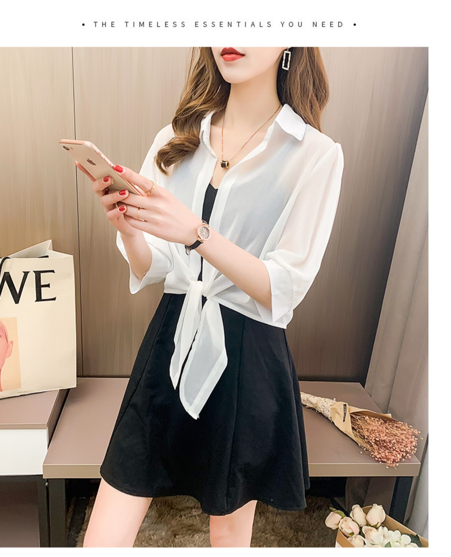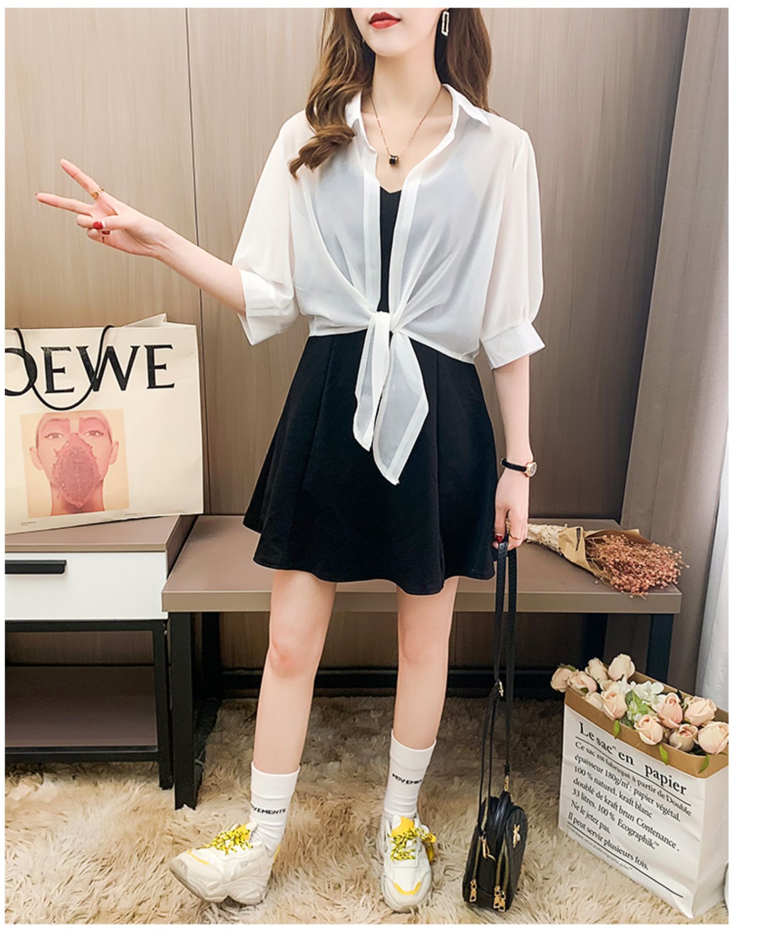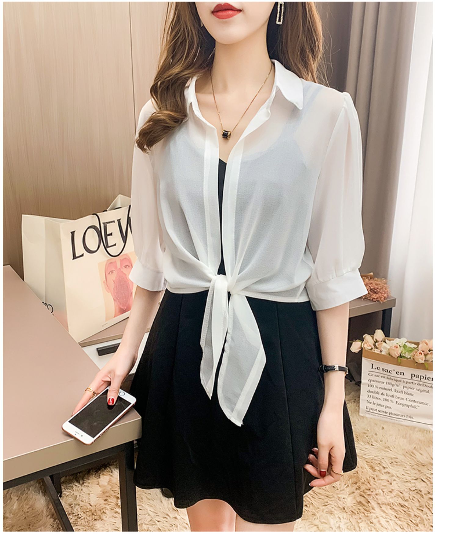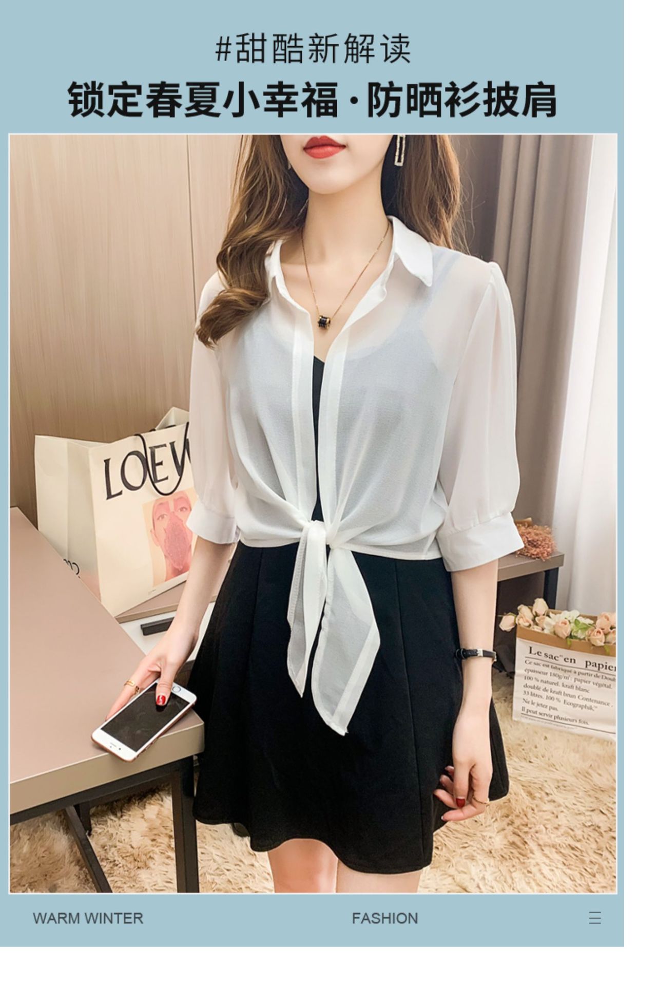 여성용 쉬폰 가디건 얇은 탑 재킷, 다용도 서스펜더 스커트, 짧은 숄, 여름 자외선 차단 의류스토어 가기