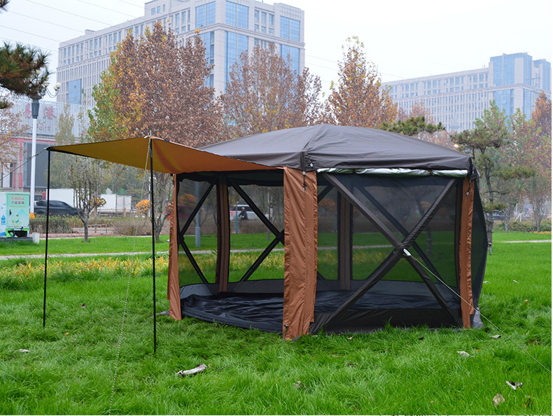공장 공급 육각형 자동 텐트 야외 캠핑 자동차 테일 연장 텐트 모기 방비 메쉬 텐트스토어 가기