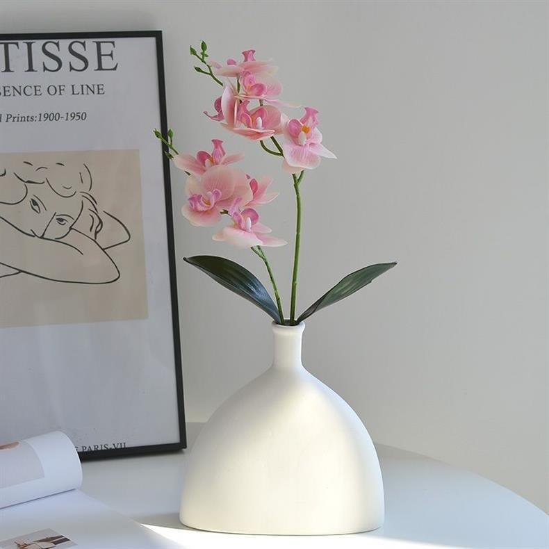 고급 센스 레트로 플레인 엠브로 세라믹 꽃병 북유럽 스타일 거실 장식 장식품 말린 꽃 도자기 꽃 홈 장식