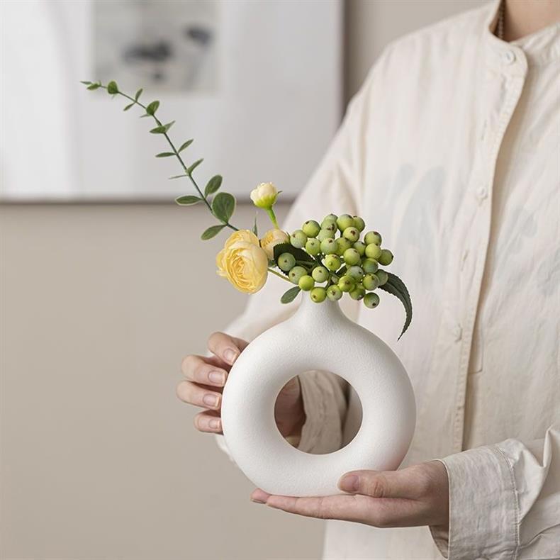 고급 센스 레트로 플레인 엠브로 세라믹 꽃병 북유럽 스타일 거실 장식 장식품 말린 꽃 도자기 꽃 홈 장식스토어 가기