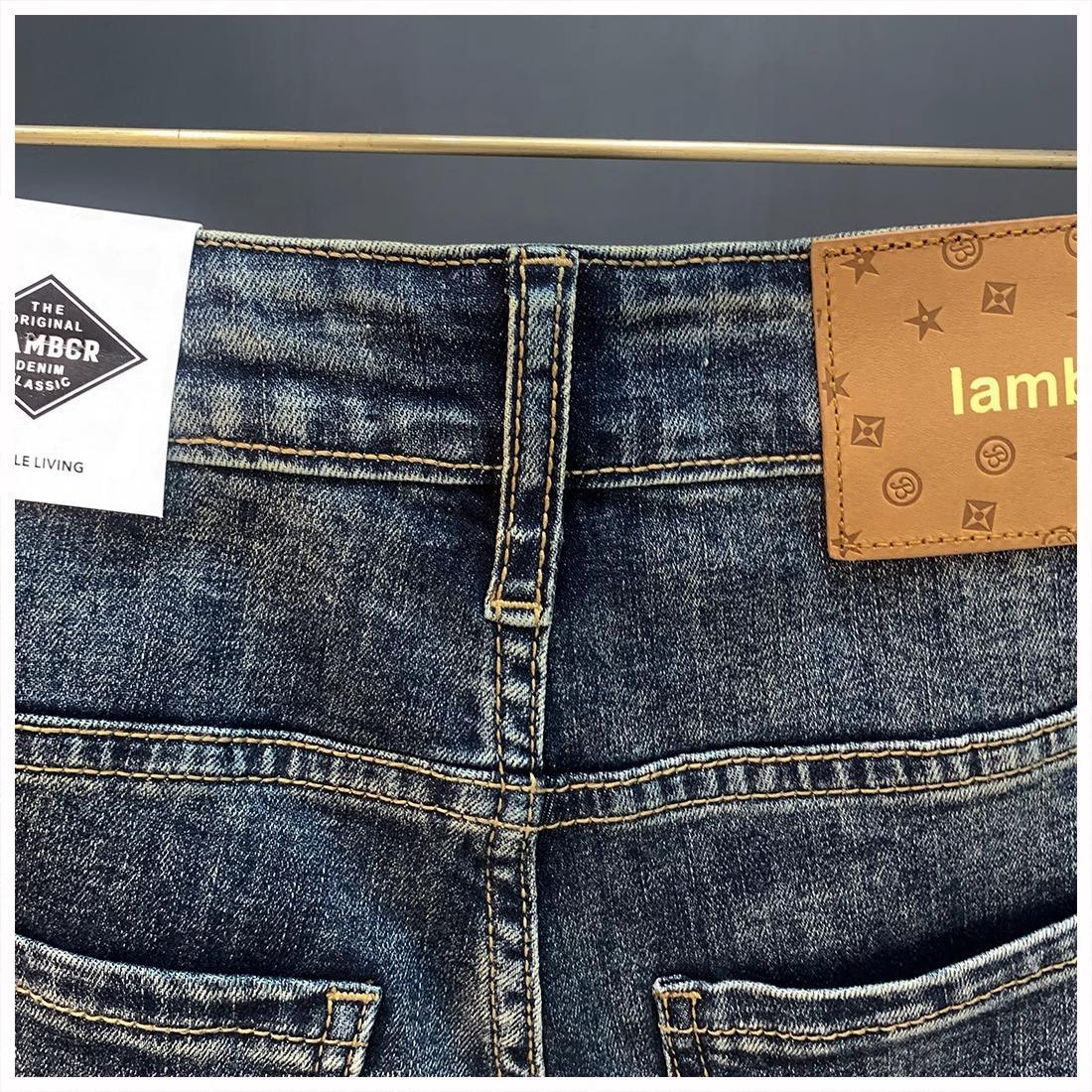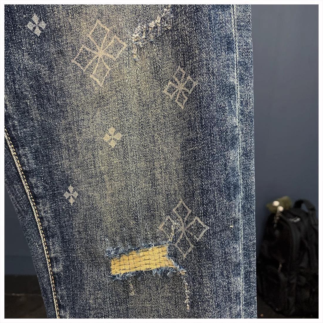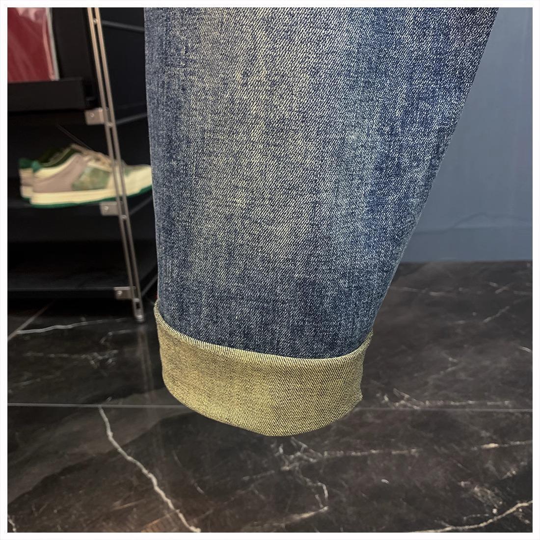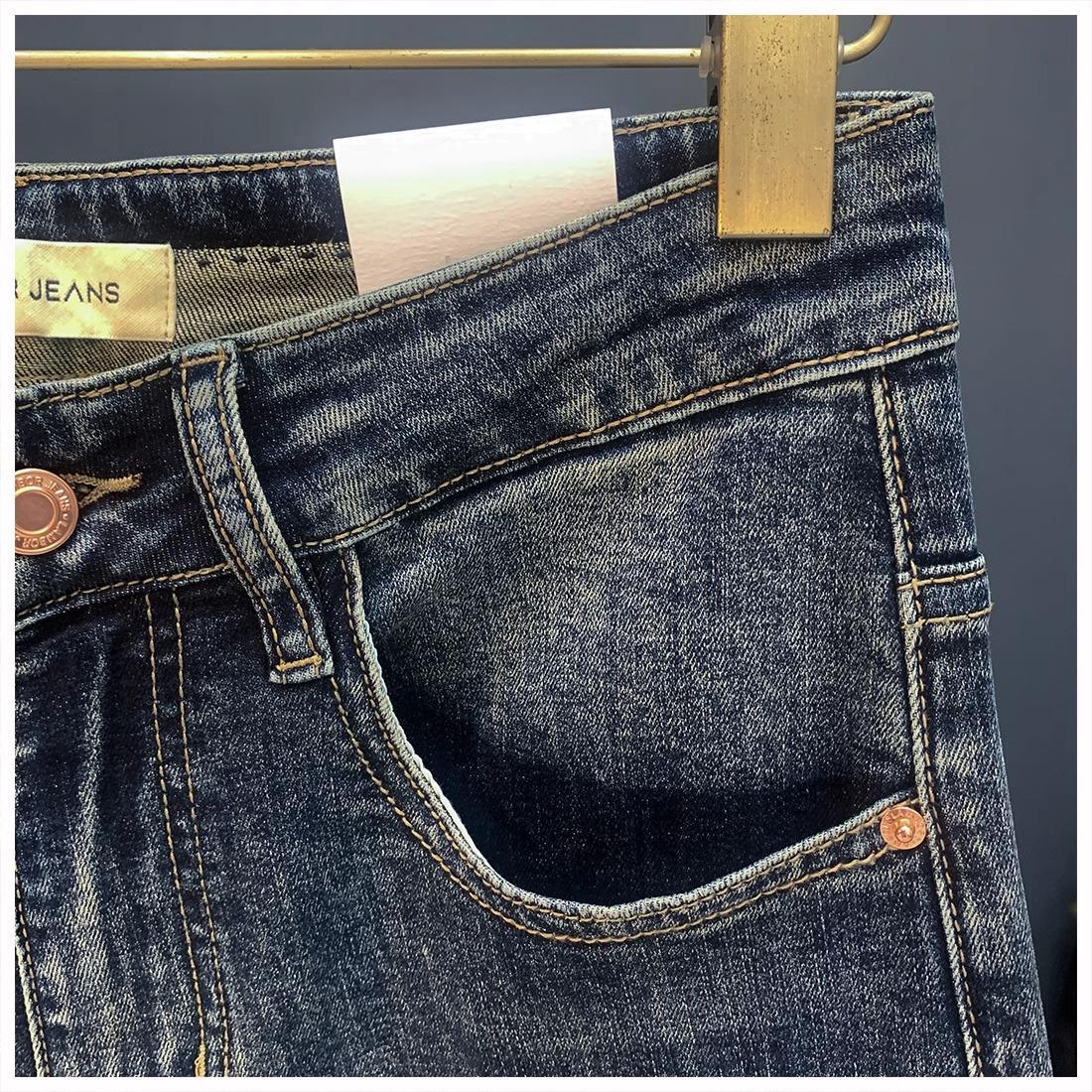 2025 신상 남성 청바지 봄 여름 슬림핏 팬츠 하이엔드 스트레치 블루 프린트 찢어진 9부 팬츠스토어 가기