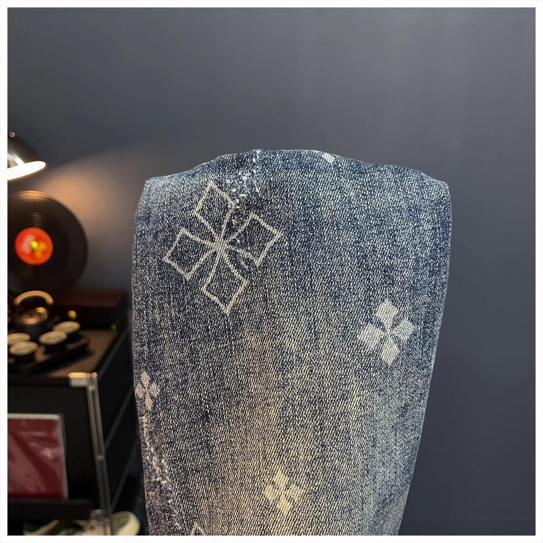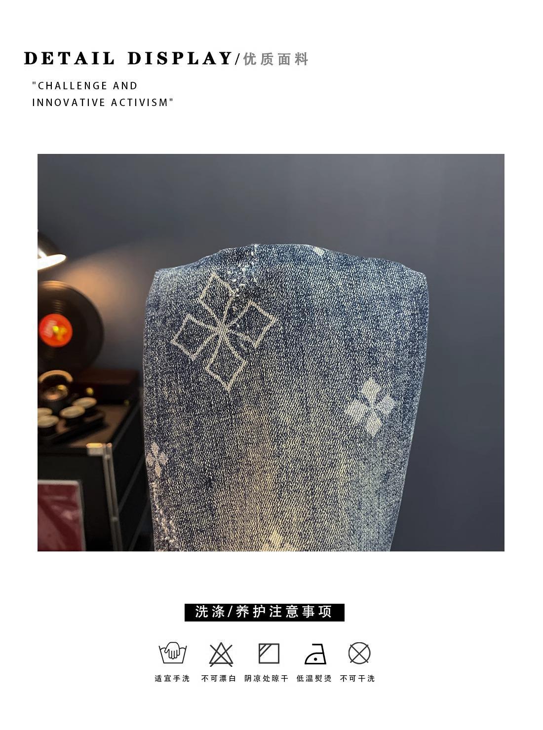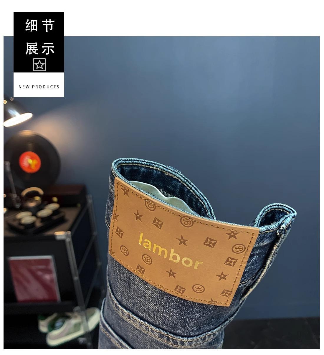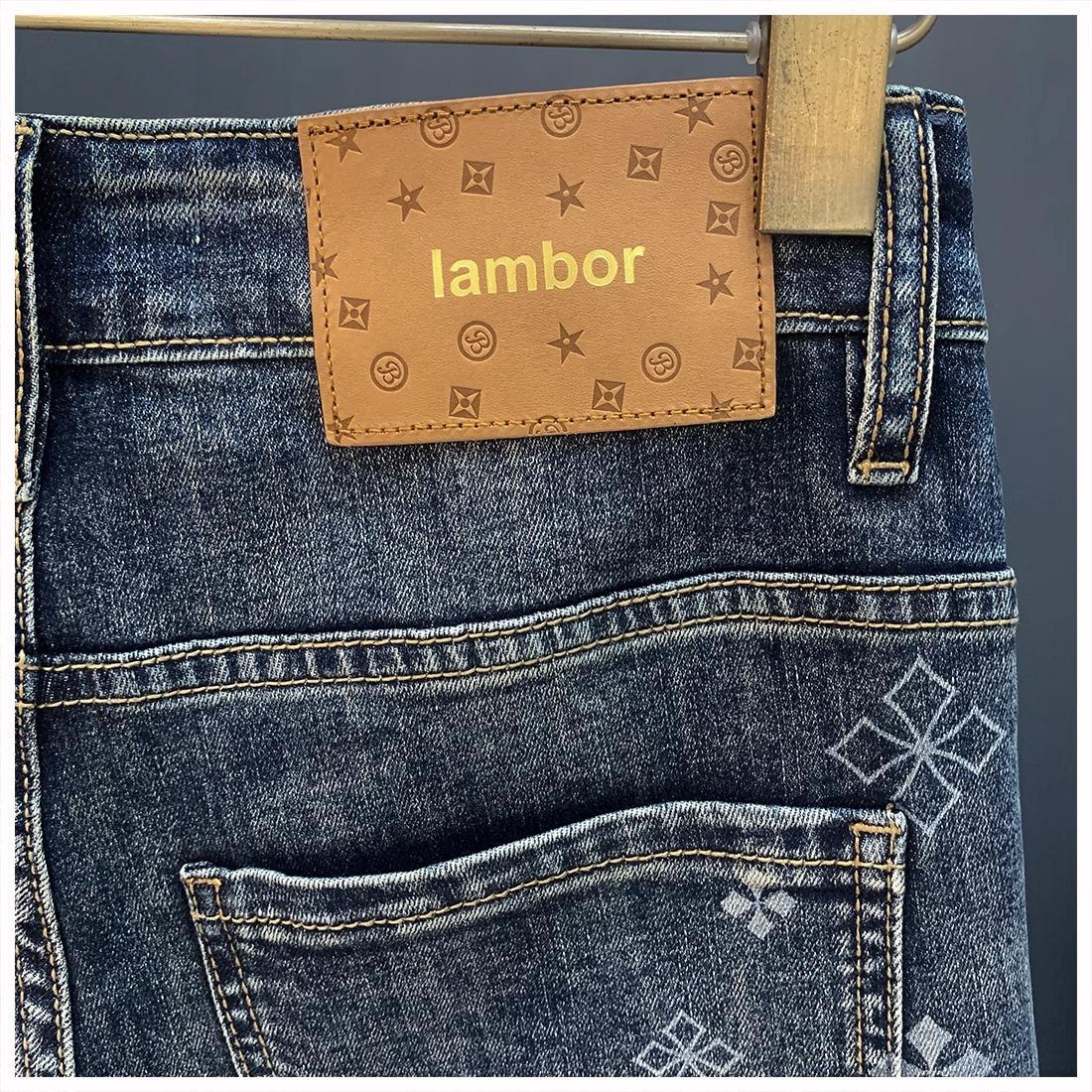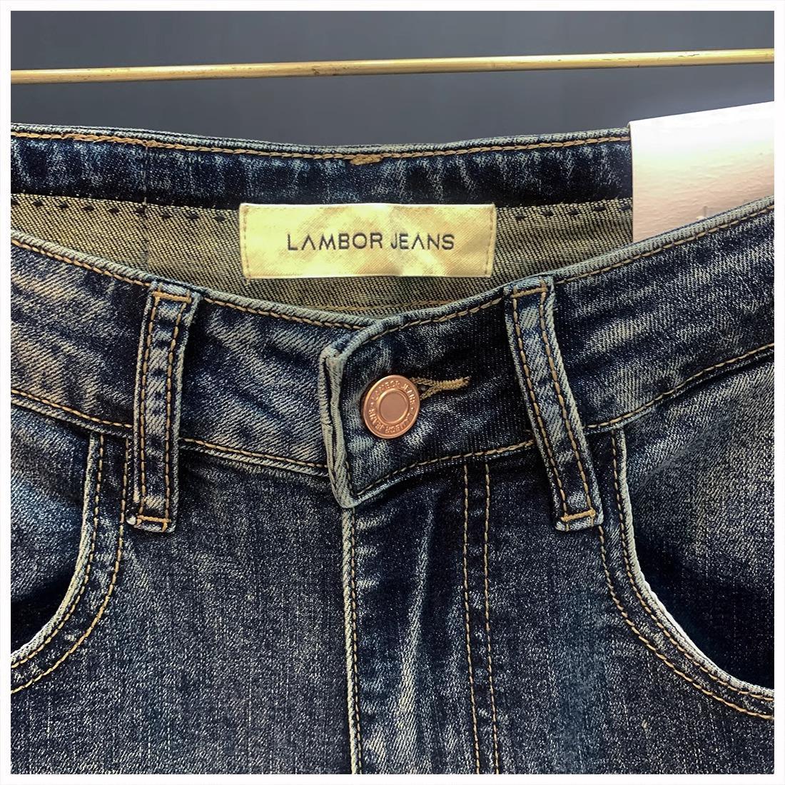 2025 신상 남성 청바지 봄 여름 슬림핏 팬츠 하이엔드 스트레치 블루 프린트 찢어진 9부 팬츠스토어 가기