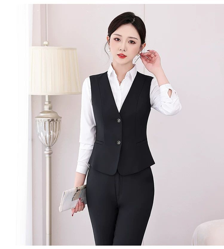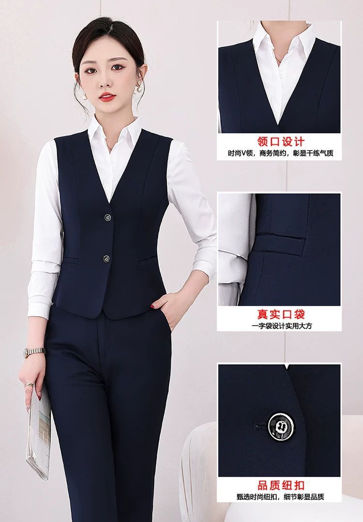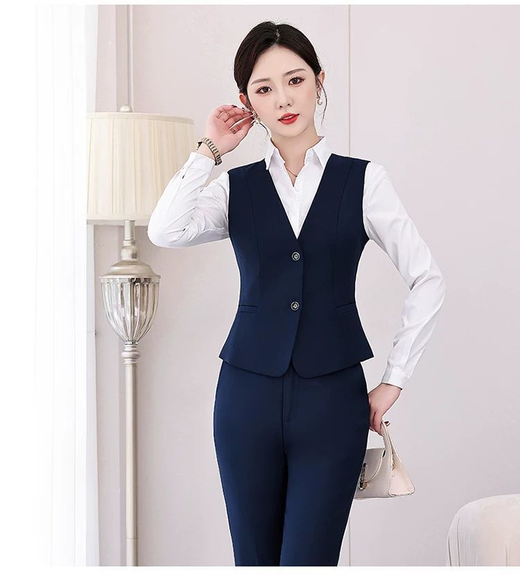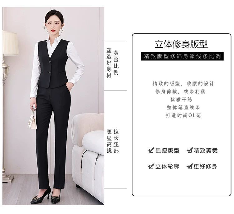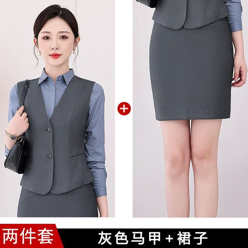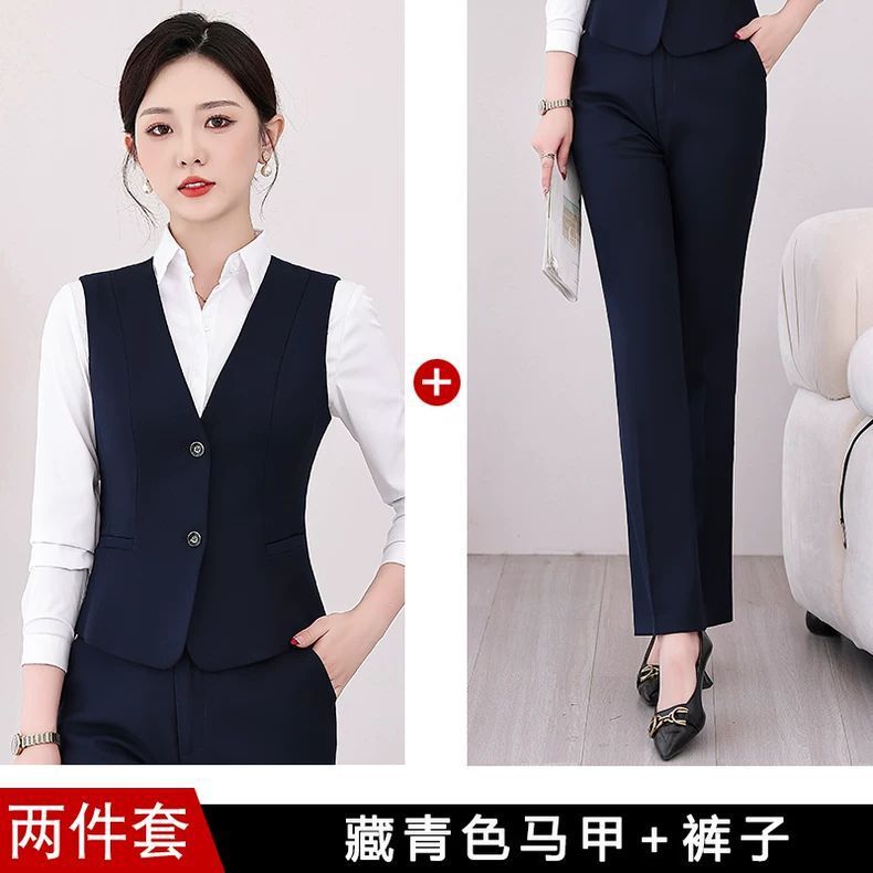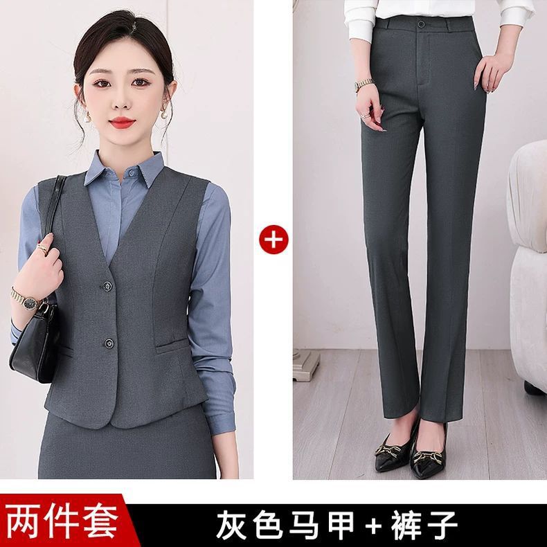 여성용 조끼 정장 2025 새로운 봄, 가을 기질 공식 드레스 호텔 은행 관리자 조끼 작업복 전문 정장