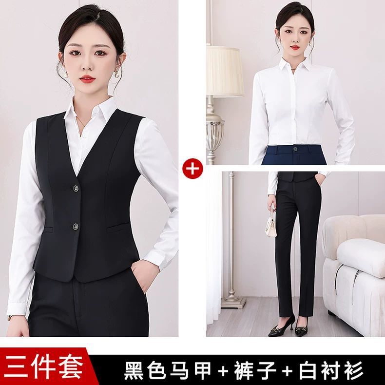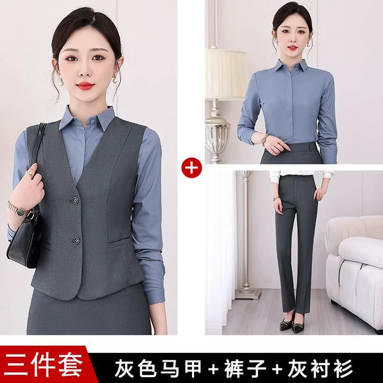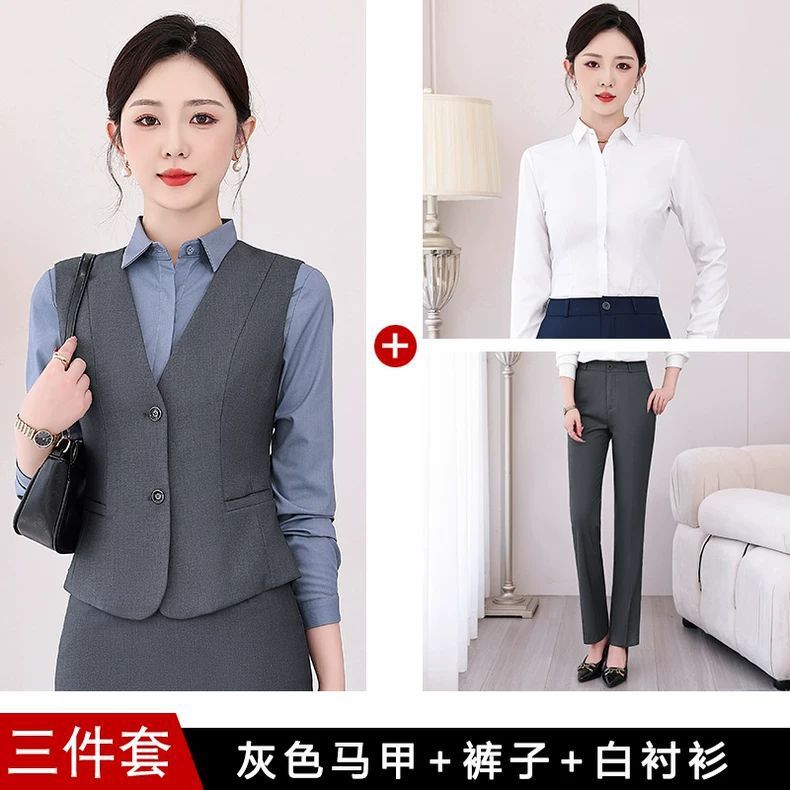 여성용 조끼 정장 2025 새로운 봄, 가을 기질 공식 드레스 호텔 은행 관리자 조끼 작업복 전문 정장스토어 가기